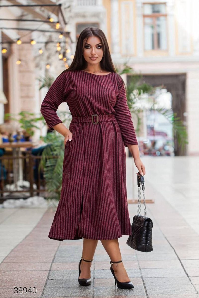 Бордова ангорова сукня великого розміру. Пояс у комплекті.
