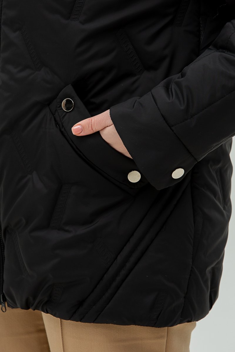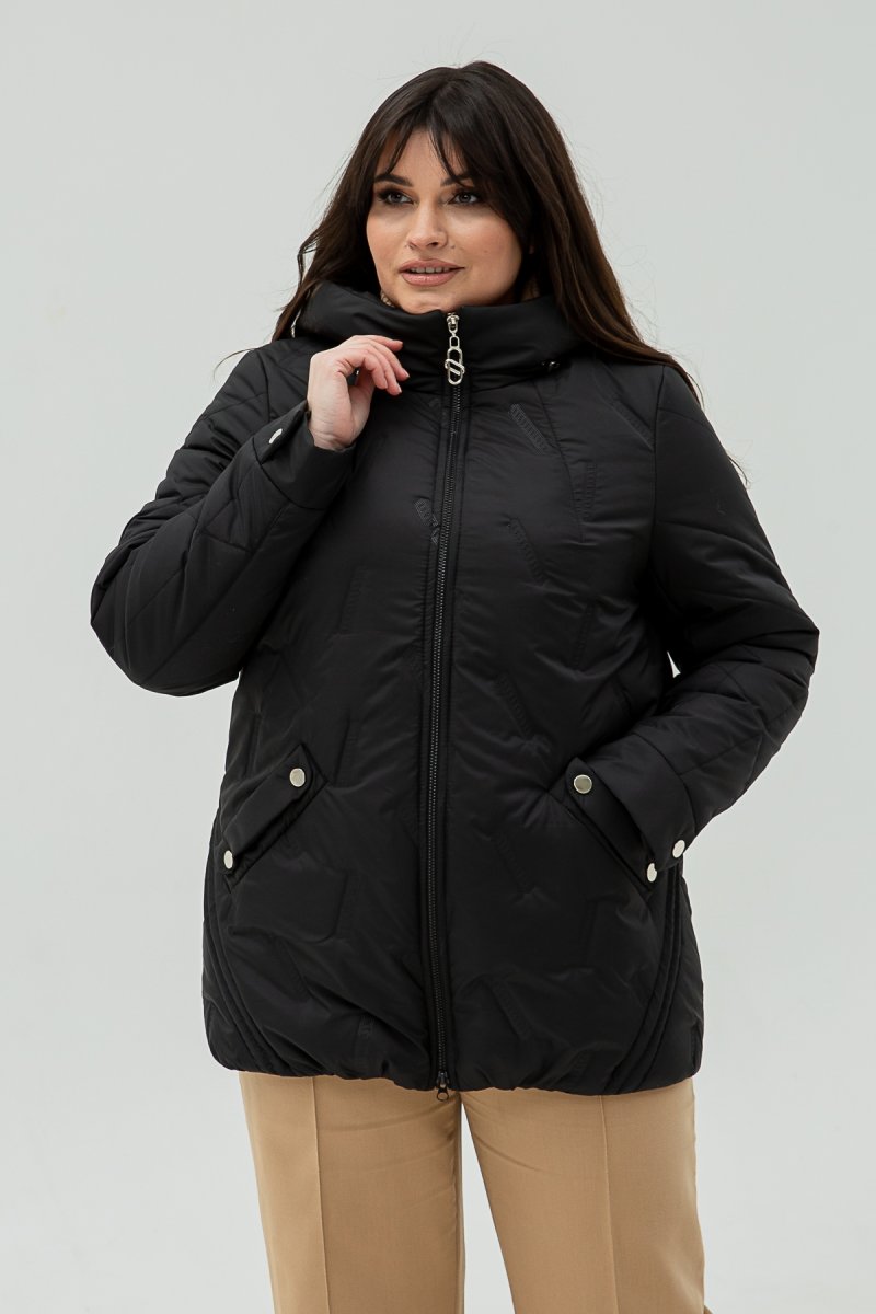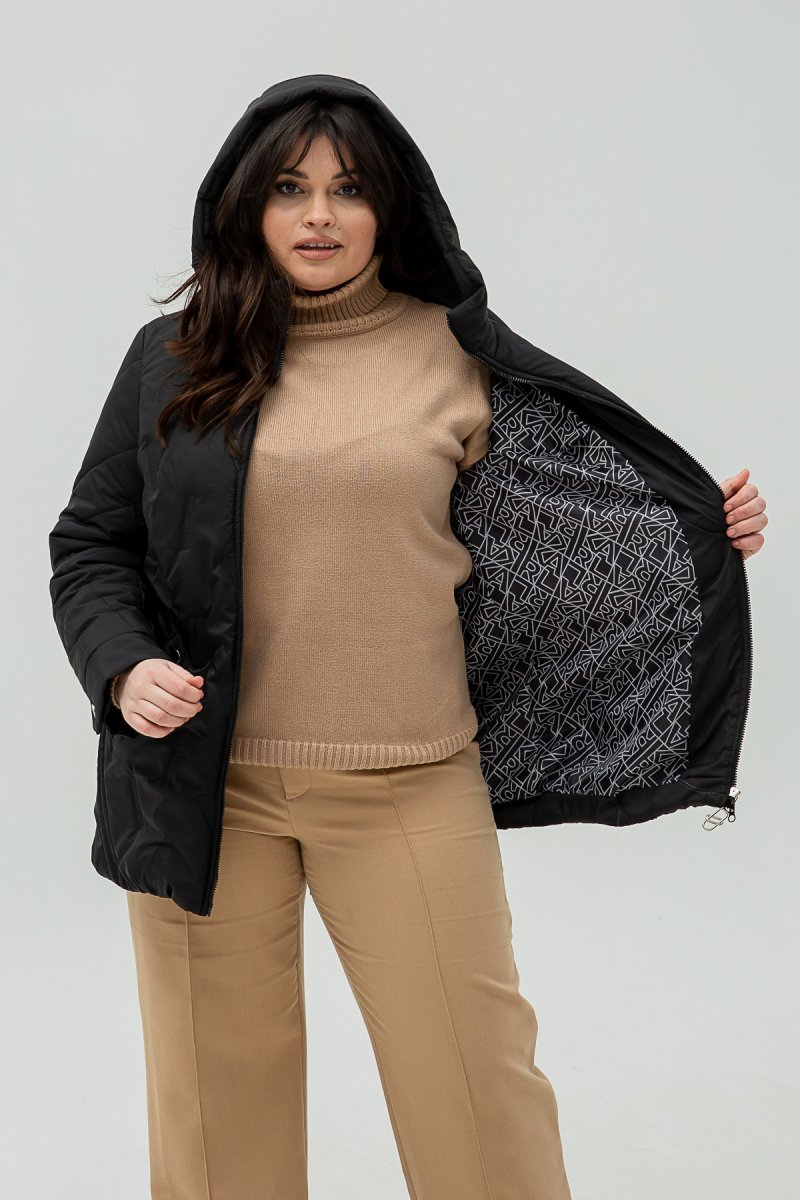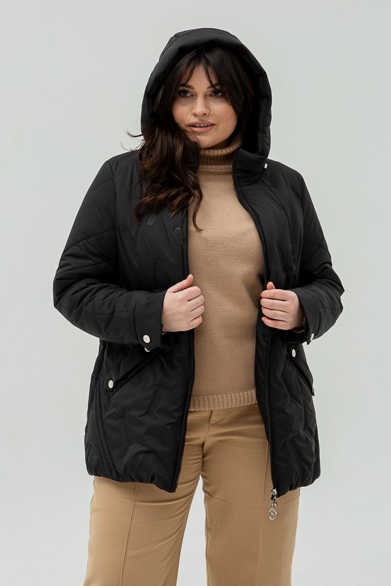Куртка виконана з плащової пайки, наповнювач- силікон (100), підкладка- нейлон. Капюшон втачний. Рукав втачний, двошовний.