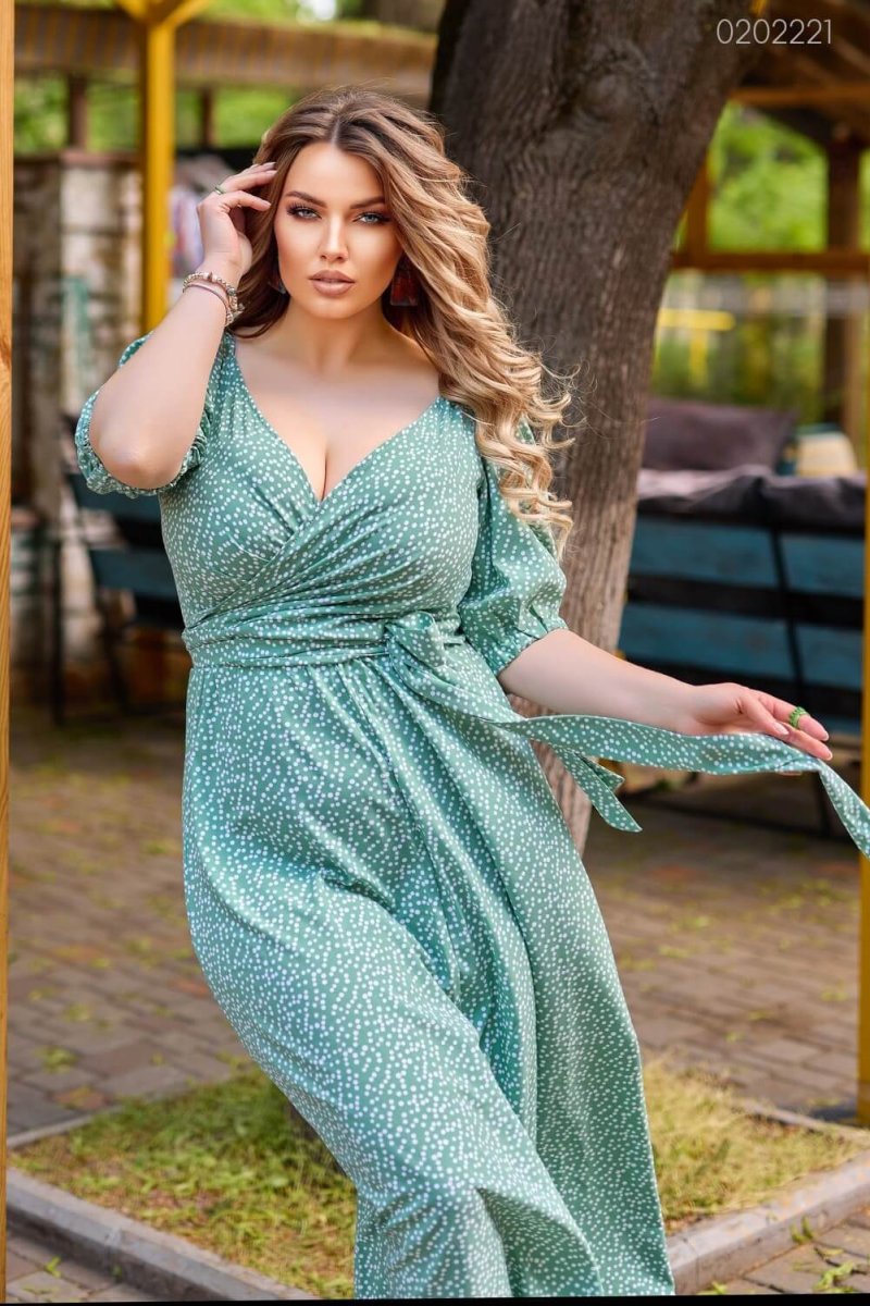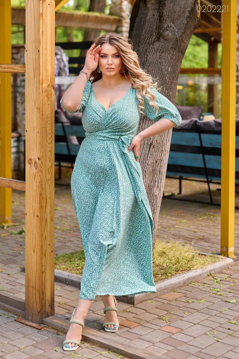 Деталі: топ із довгими зав'язками на запах, з подовженими пишними рукавами на резинці. Спідниця-трапеція на гумці по спинці та блискавкою у лівому боці.