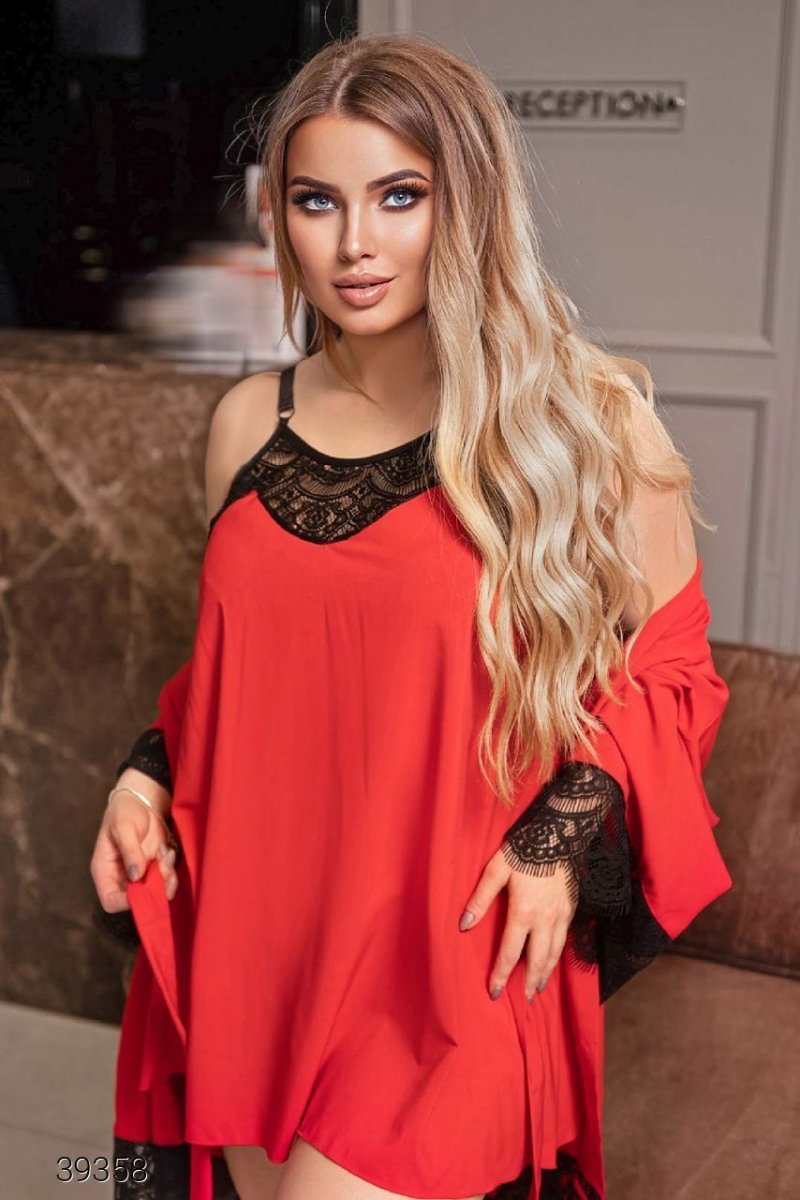 Комплект з нічної сорочки та халату. Халат вільного силуету, рукав 3/4. Нічна сорочка вільного крою на бретелях, що регулюються. Тканина: супер софт, дуже легка та приємна до тіла, не тягнеться.