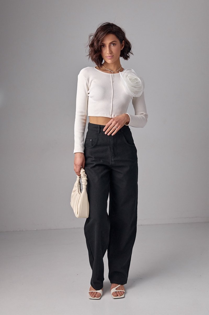 Короткий джемпер у рубчик з об'ємною квіткою - 12380 чорний