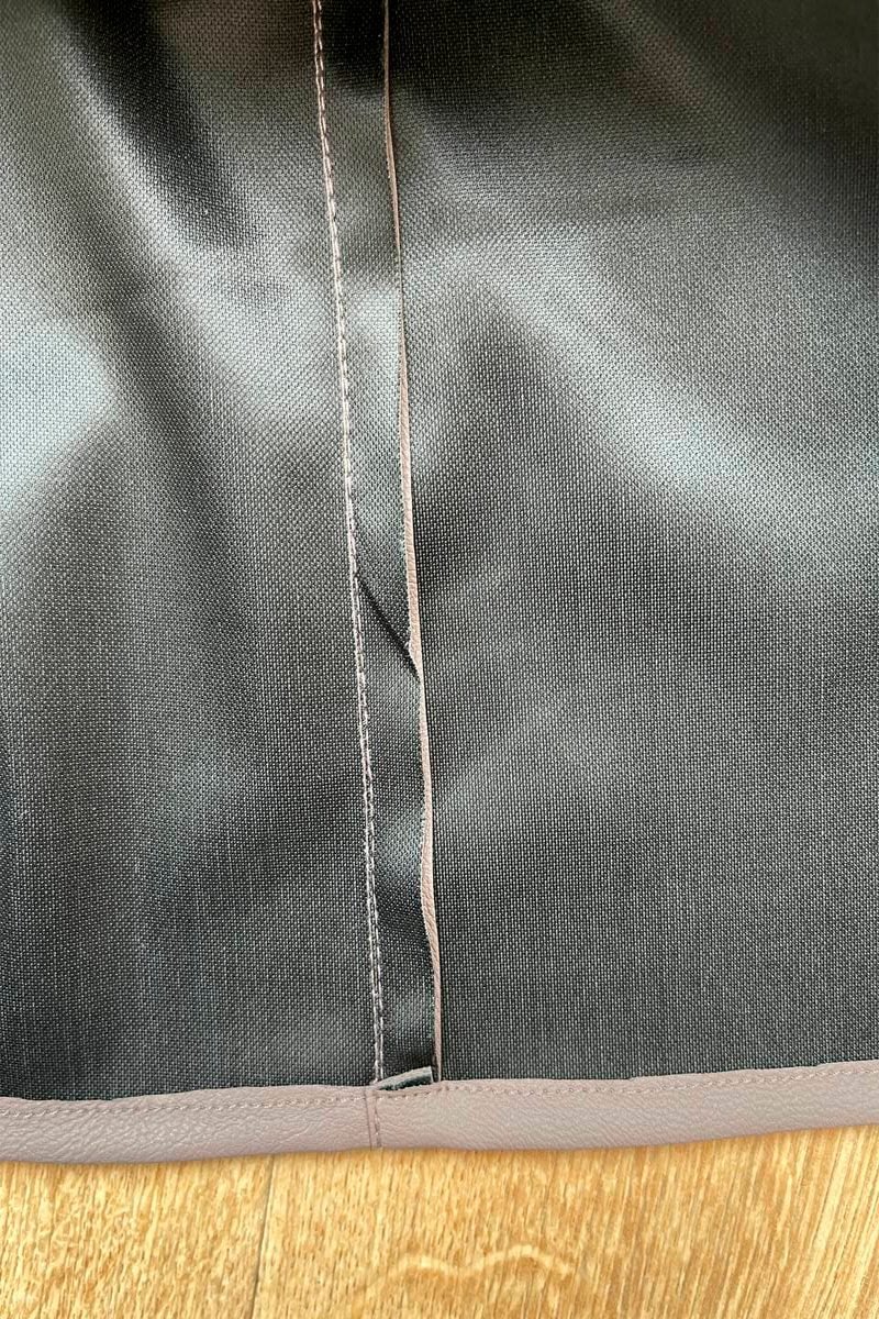 Сукня довжини міні з еко-шкіри з вирізом каре. Рукава 3/4, манжети на гумці. У комплект входить пояс, який виконаний з еко-шкіри і ланцюга золотого кольору. Потайна блискавка по боковому шву.