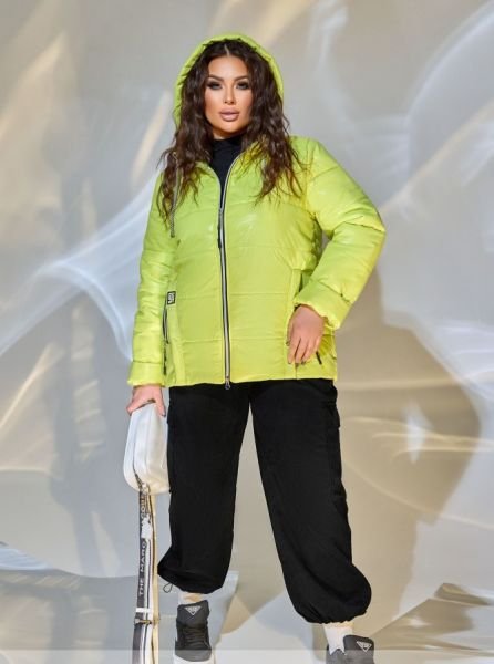 Ця куртка середньої довжини не лише вражає своєю яскравістю, але і є практичною, об'єднуючи в собі стиль та зручність. Капюшон зі шнурком, дві кишені на талії, які застібаються на блискавку. Куртка має довгі рукава. Ця куртка ідеальна для тих, хто цінує стиль та зручність у повсякденному житті та хоче створити яскравий образ.