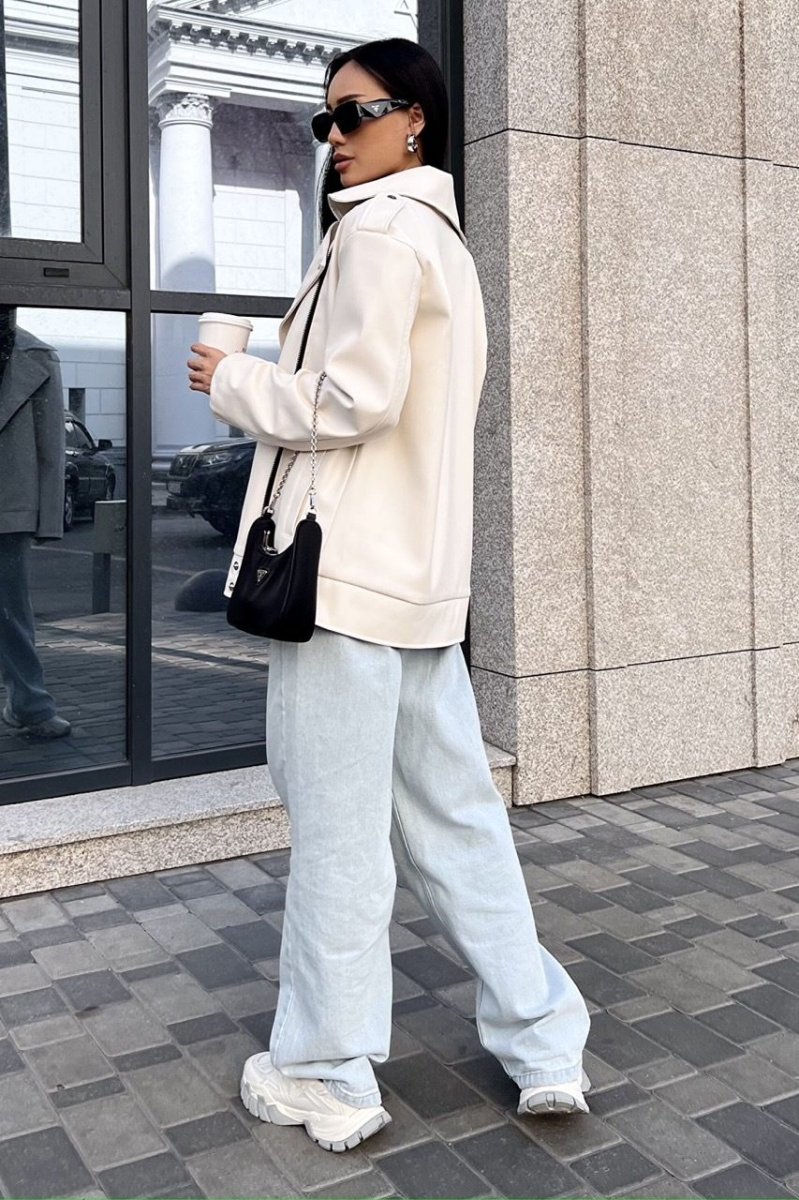 Косуха з легкістю стане універсальним елементом гардеробу: вдень її можна поєднувати з повсякденними джинсами і пуловером,