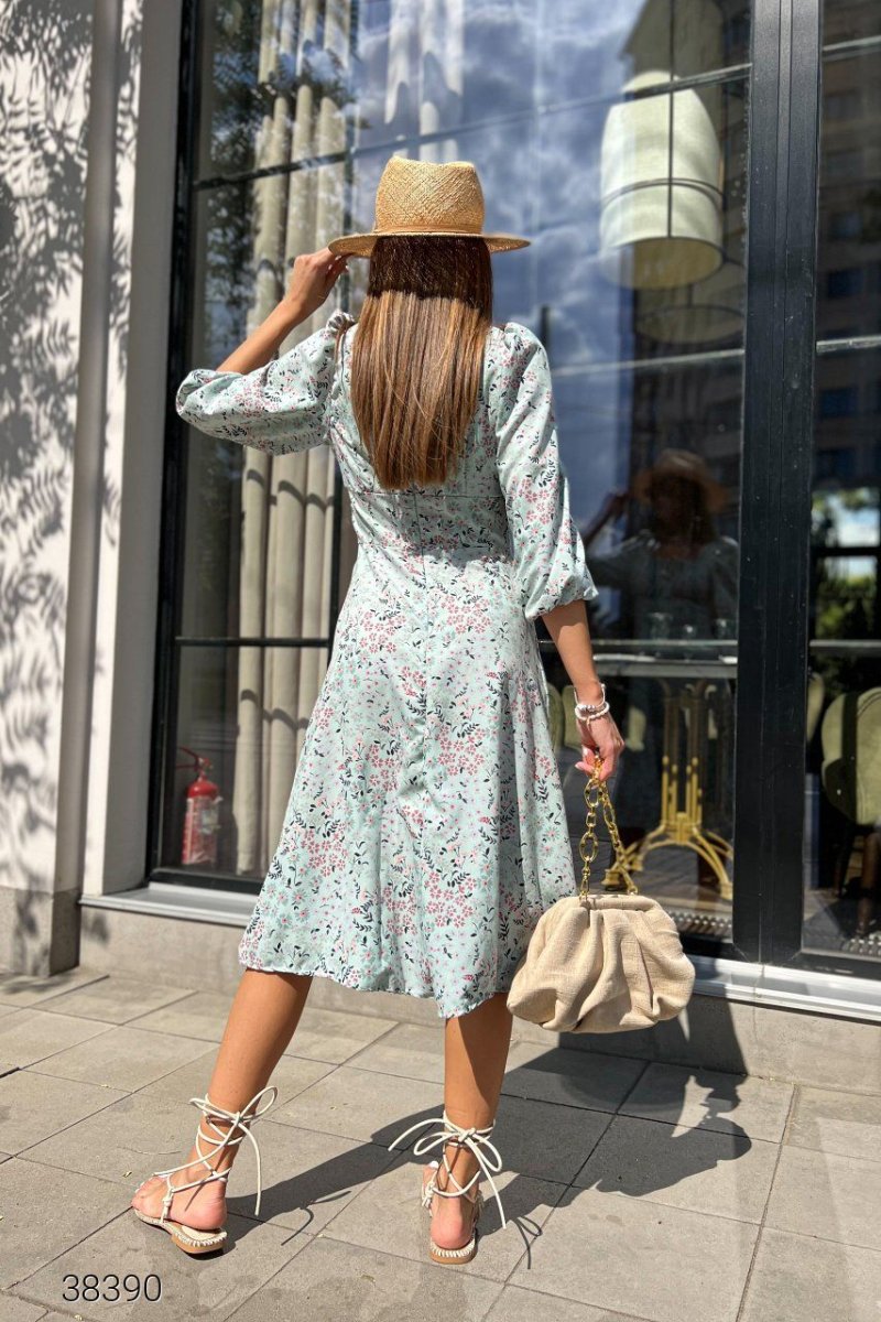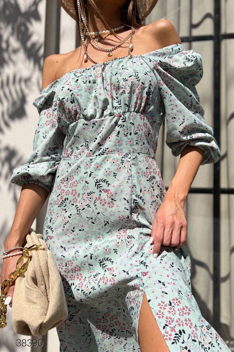 Легка літня сукня. На грудях гумка. На спині потайна змійка. Попереду бічний розріз на спідниці.