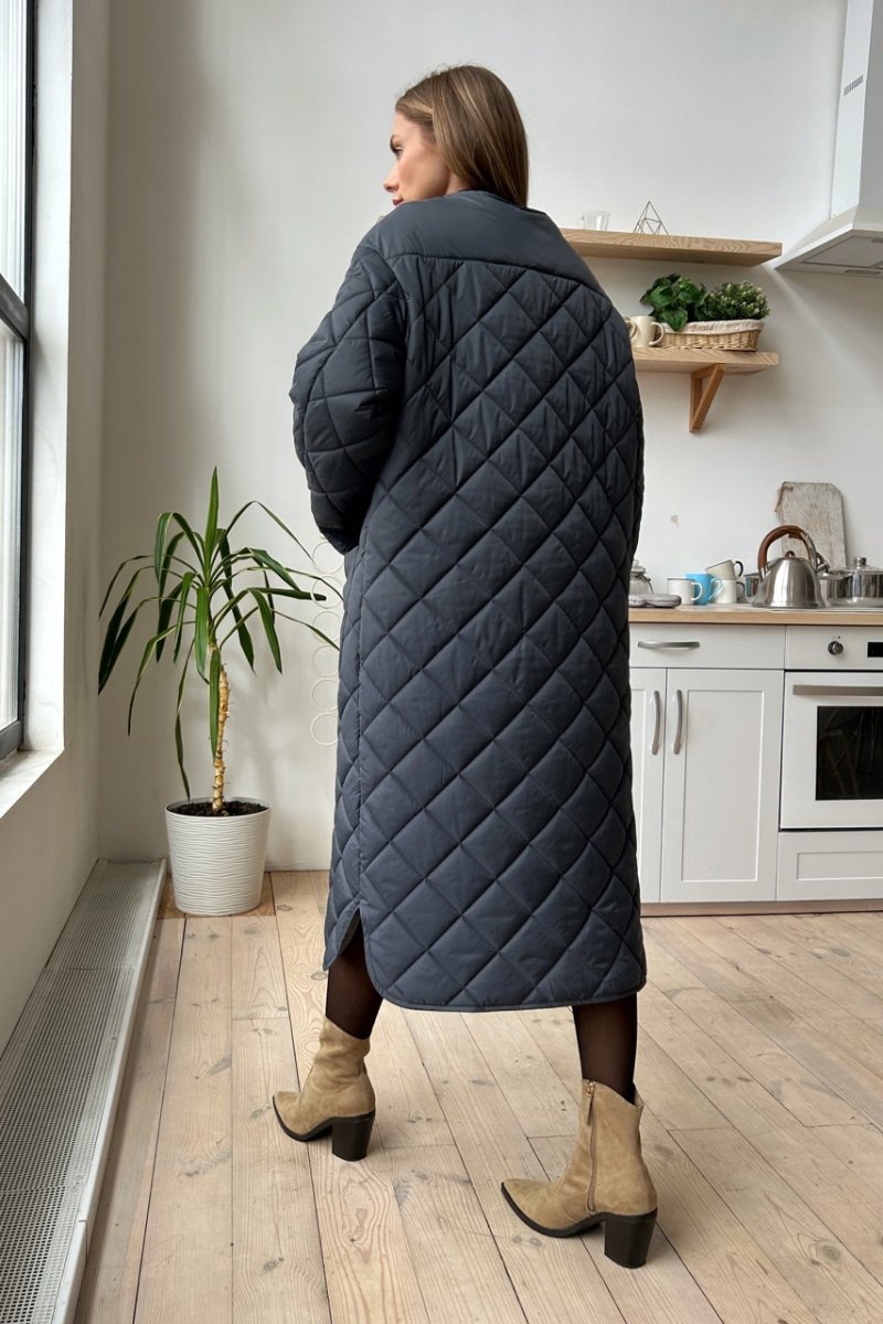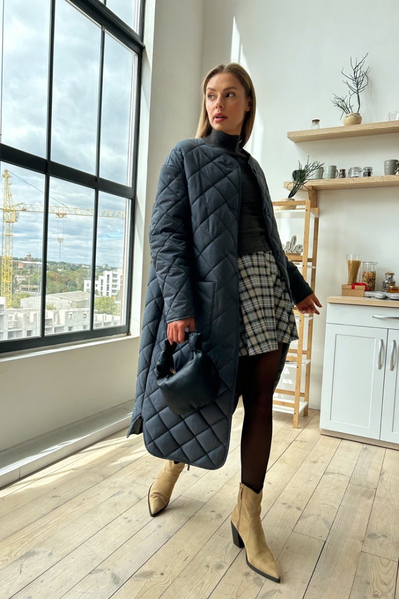 Це стильне стьобане пальто з плащової тканини та мікро пуху – ідеальне рішення для холодних днів.. Воно забезпечує відмінну теплоізоляцію та захист від вітру.. Крім того, це пальто виглядає дуже модно та елегантно.