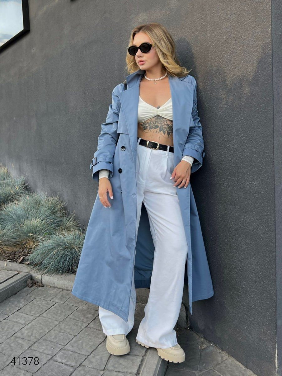 Плащ жіночий. Щільна тканина верху і підклад з плащової тканини роблять його непродувним, також добре захищає від дощу. Тканина: полірована меморі-сатин, підклад плащівка. Плащ добре підійде на холодну осінь.