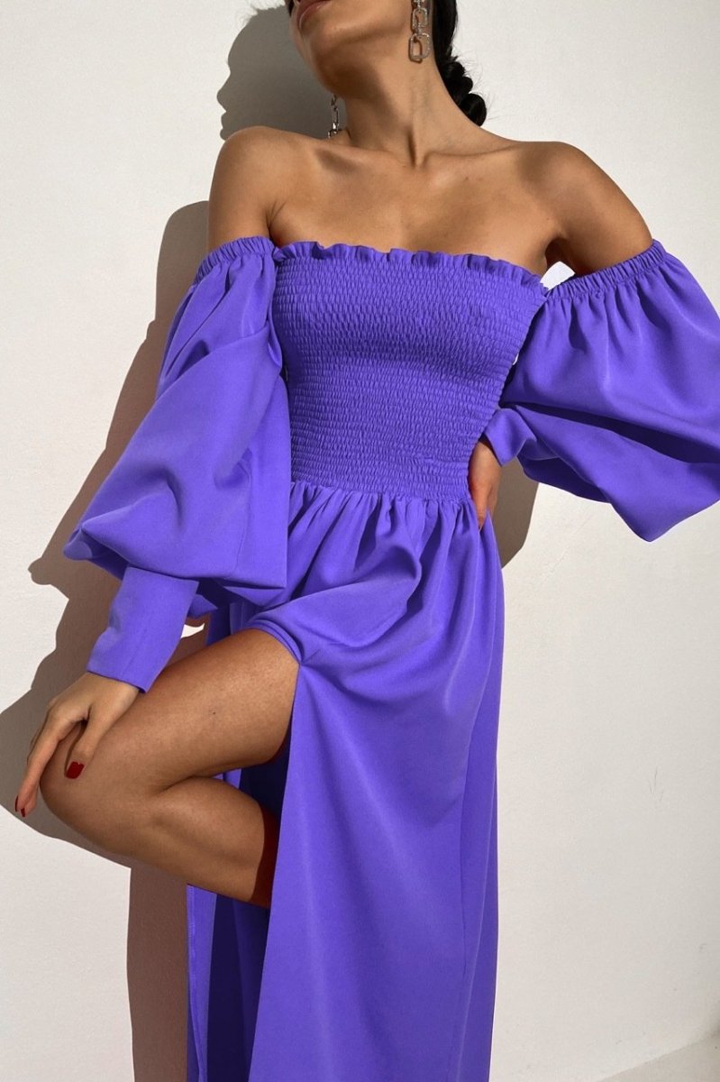 Шикарна і повітряна сукня «Ділара» додасть ніжності та жіночності у сучасний образ дівчини. Сукня Х-подібного силуету з пишним рукавом на високому манжеті. Ліф на резинці, відмінно підійде для струнких дівчат так і власниць пишних форм. По переду передбачено високий розріз. Рукав – пришивний на резинці. Пишна спідниця додасть Вашому образу романтичності. До жіночного образу сміливо додавайте взуття на підборах, компактні сумочки та елегантну біжутерію.