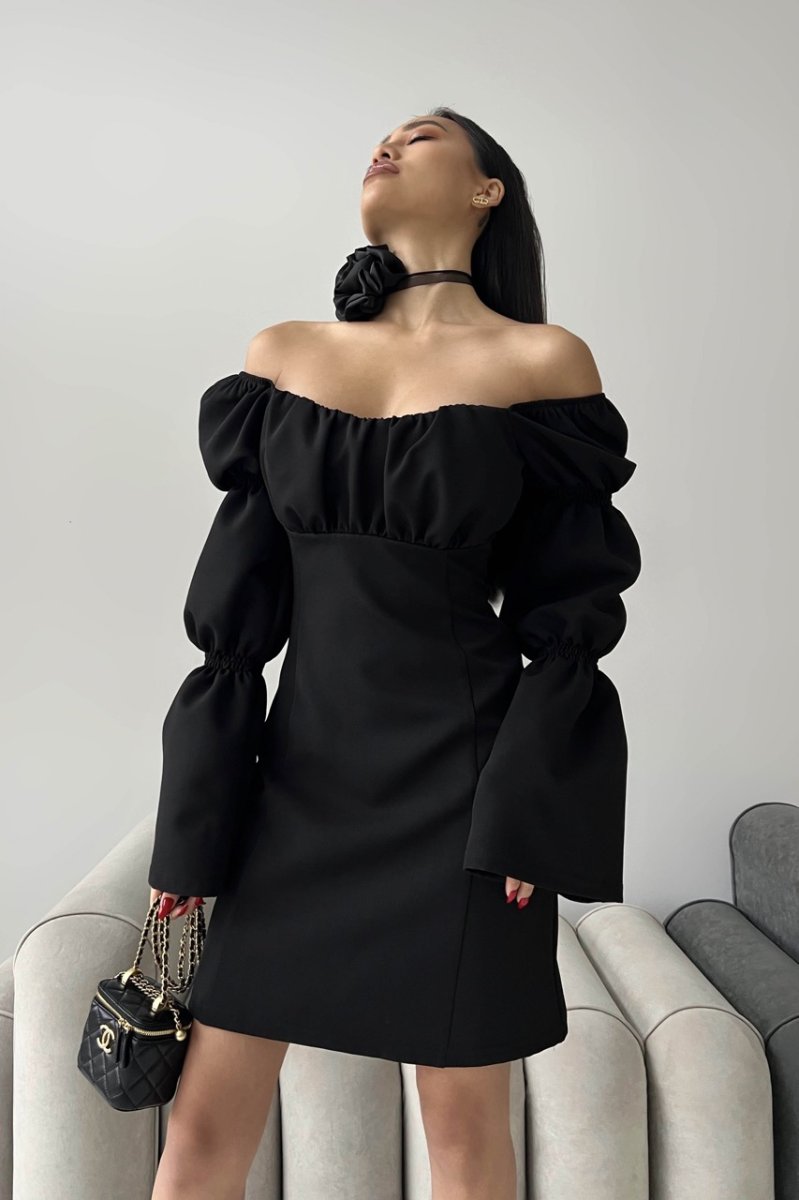 Завітайте у світ грайливості та яскравості з нашою міні – сукнею. Одночасно елегантний та сексуальний наряд підкреслить Вашу індивідуальність. Модель відріняють цікаво оформлені рукава з драпіровками, розкльшені до низу. Драпіроний ліф на поролоні, по спинці блискавка.