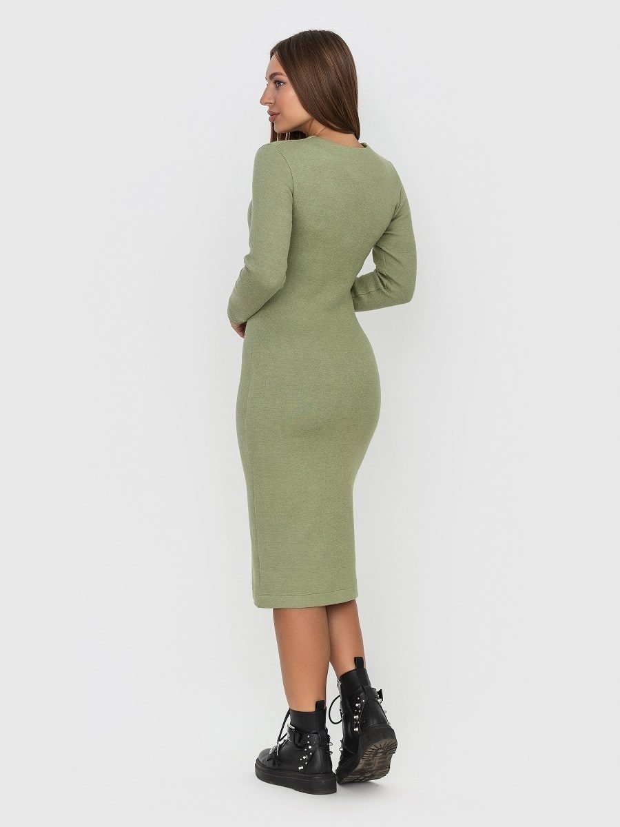Затишне і тепле плаття Мірабель володіє лаконічним дизайном і актуальною в цьому сезоні довжиною міді. Сукня прилеглого силуету ідеально сідає по фігурі, підкреслюючи її жіночні вигини. Ефектне виконання має область декольте, доповнена металевою шнурівкою.