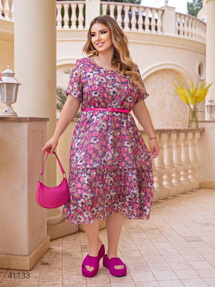 Сукня шифонова великих розмірів. Тканина: шифон плюс підклад з софта. Ремінь у комплект не входить.