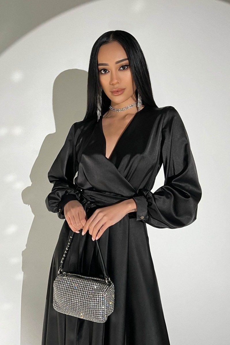 Неперевершена вечірня сукня з ніжного шовку «Армані» підкорить Вас з першого погляду. Дизайнерське рішення комір-шаль надає виробу особливої розкоші.