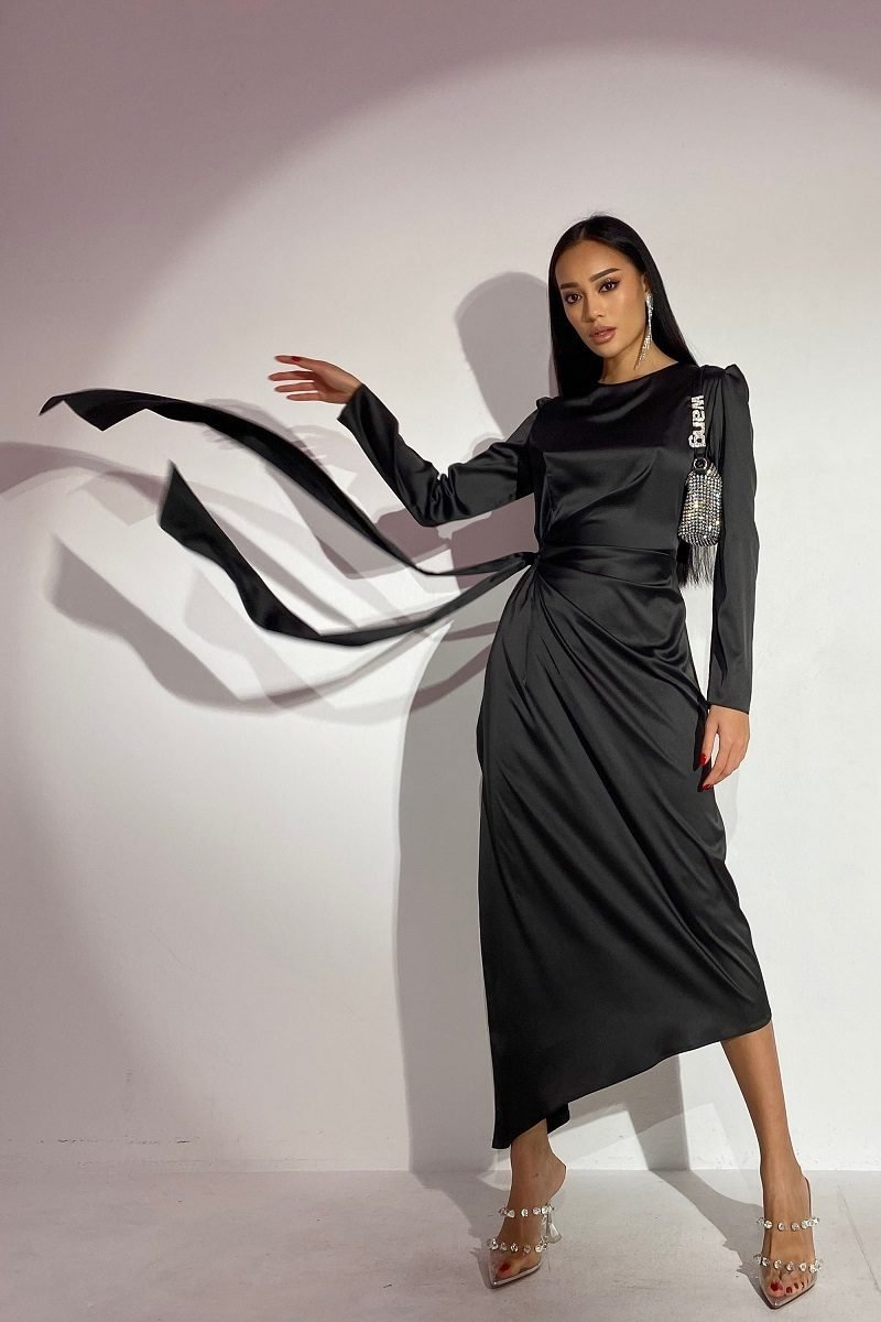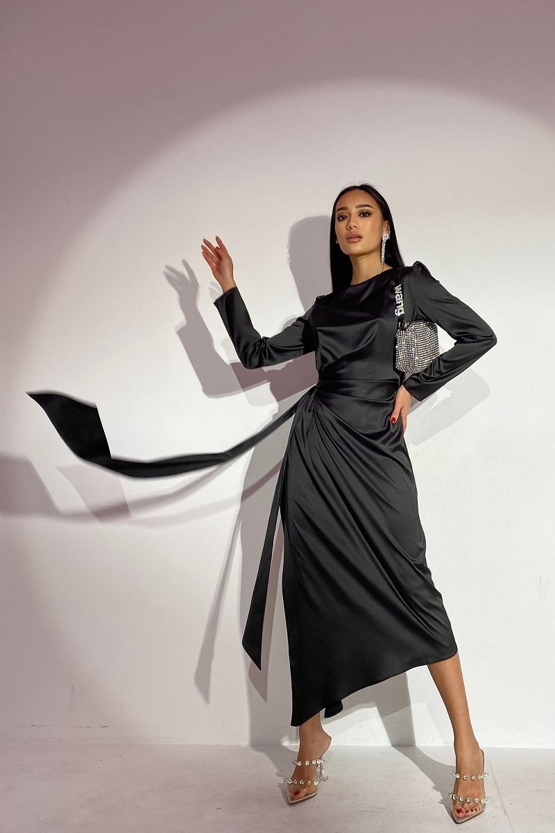 ● Декоративні елементи: драпірування по переду, високий розріз по боці, асиметричний низ.