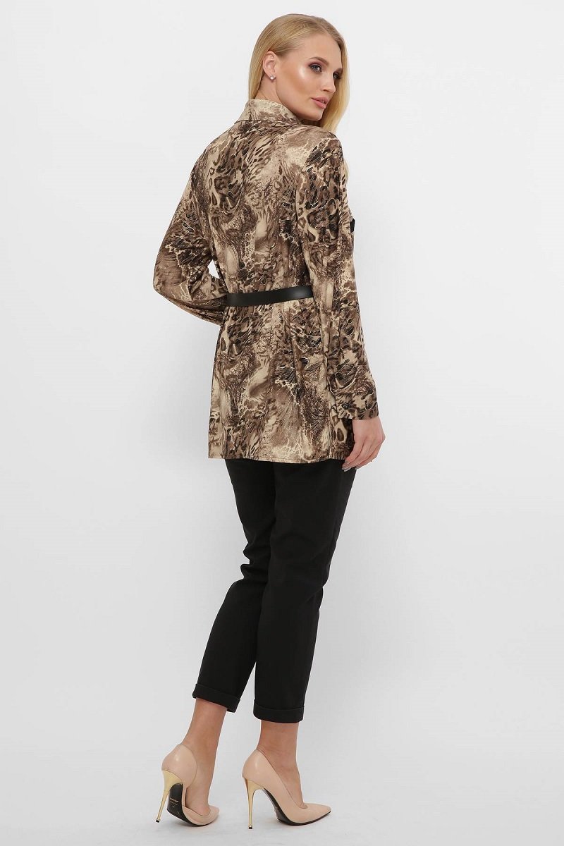 Трикотажна сорочка з довгим рукавом на манжетах. Клапани кишень на грудях і подборт підстави коміра виконаний з контрастної тканини. Сорочку можна носити на випуск з пояском.