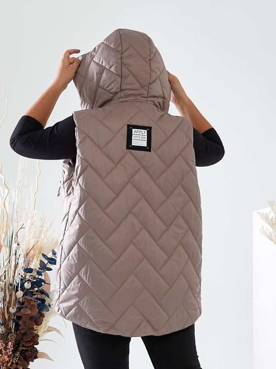 Стьобана жилетка жіноча. Стильна стьобана жилетка з кишенями, зручним глибоким капюшоном та якісною фурнітурою.