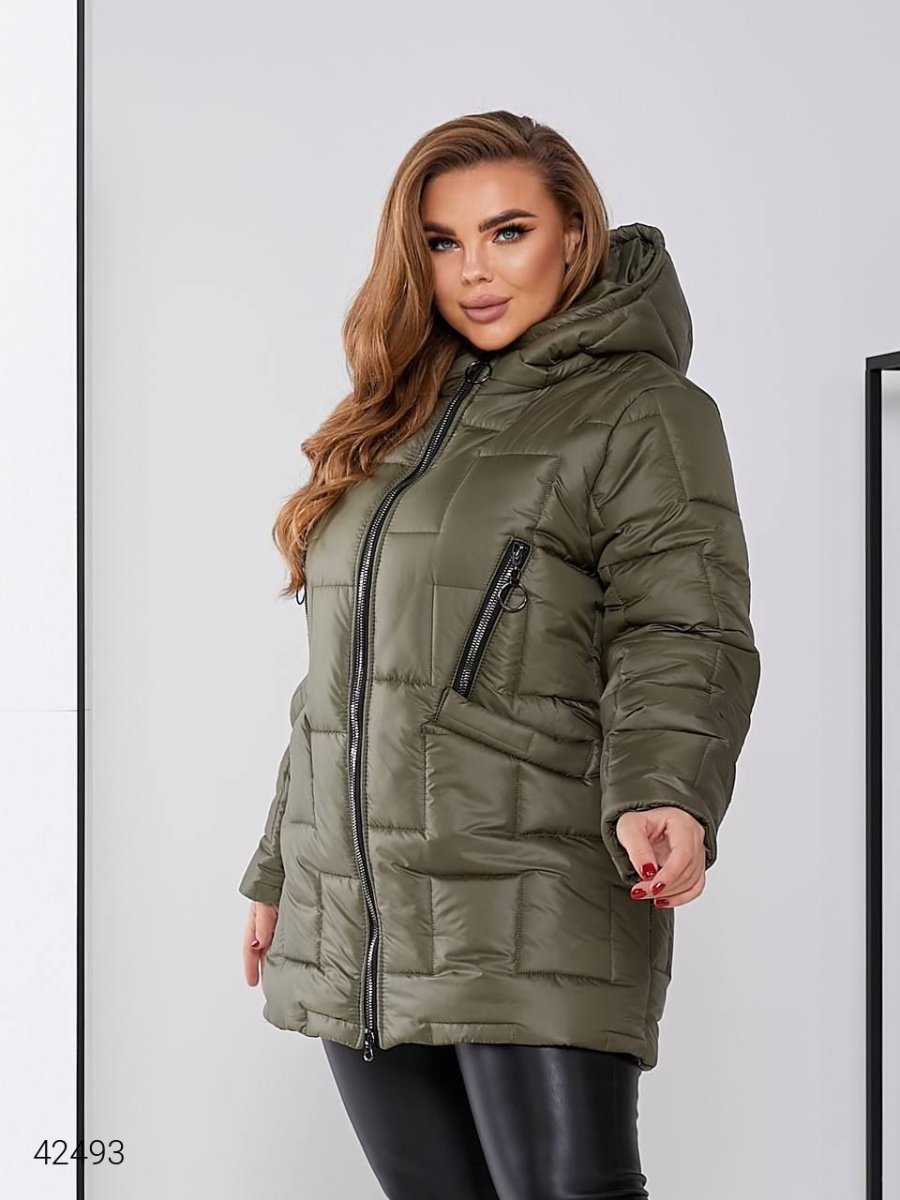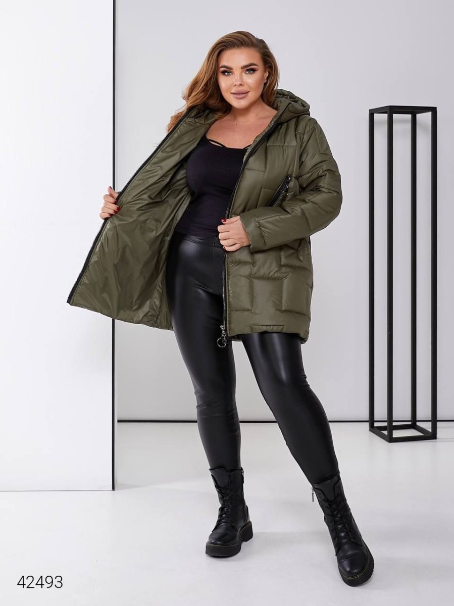 Стьобана жіноча куртка. Стьобана куртка прямого крою з великим капюшоном та якісною фурнітурою.