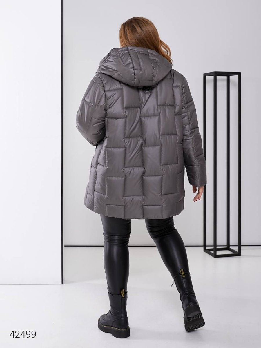 Стьобана жіноча куртка. Стьобана куртка прямого крою з великим капюшоном та якісною фурнітурою.
