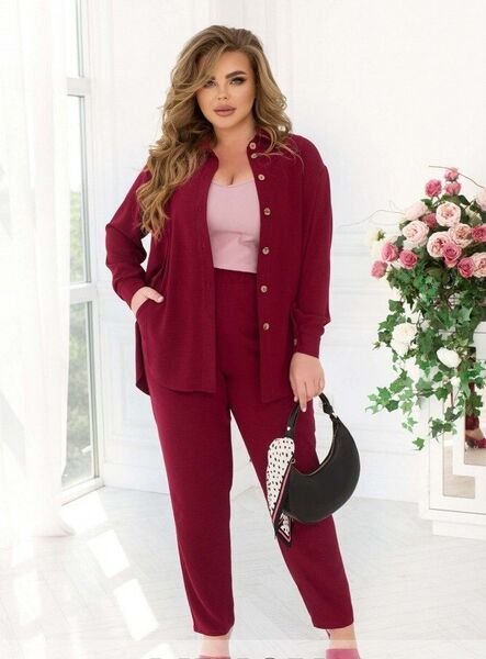 58-60 р-р: довжина брюк по внутрішньому шву 73см, довжина брюк по зовнішньому шву з урахуванням поясу 108см, ОТ - 90-130см, ОС -138см.