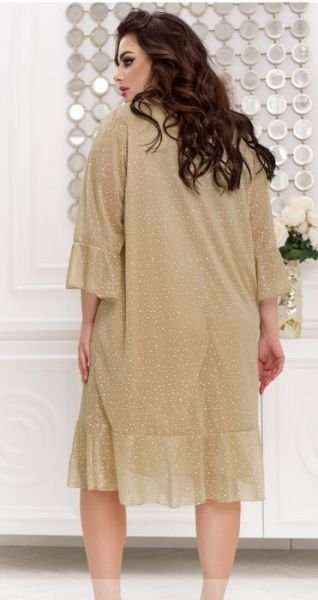 Невагома сукня, яка складається з двох шарів. Перший із яких - щільна підкладка, а друга - сітка, декорована яскравими прикрасами. Сукня застібається на ґудзик на спинці. Рукава подовженні з легким воланом на кінці.