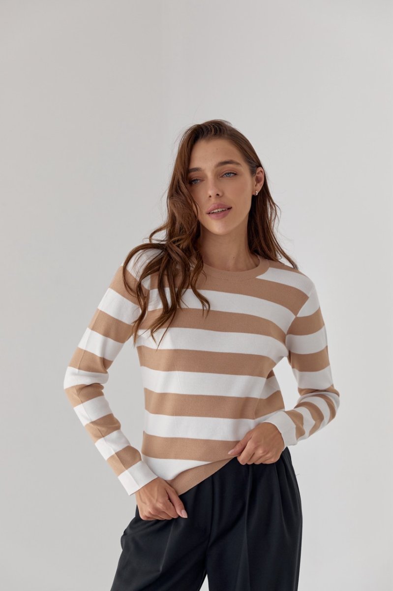 Светр грубої в'язки в візерунок" Коса " V302913 коричневий
