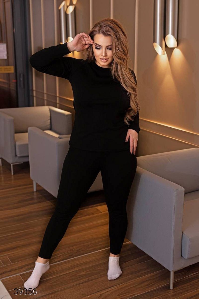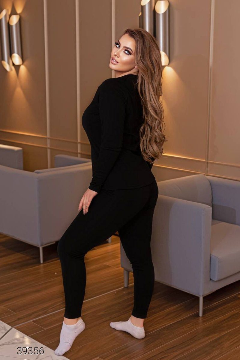 Орієнтовні заміри по готовому виробу: 42-46 (кофта: ог 94, от 78, спинка 63, рукав 73; штани: от 66-100, об 94, длина 95/75), 48-50 (кофта: ог 100, от 94, спинка 64, рукав 84; штани: от 72-105, об 106, длина 96/76), 52-54 (ог 106, от 98, спинка 65, рукав 75; штани: от 72-110, об 112, длина 97/77), 56-58 (ог 110, от 102, спинка 66, рукав 76; штани: от 78-115, об 118, длина 98/78), 60-62 (ог 114, от 106, спинка 67, рукав 77; штани: от 82-120, от 124, довжина 99/79). Вимірювання зроблено в не розтягнутому вигляді. Розтяжність тканини до +10 см.