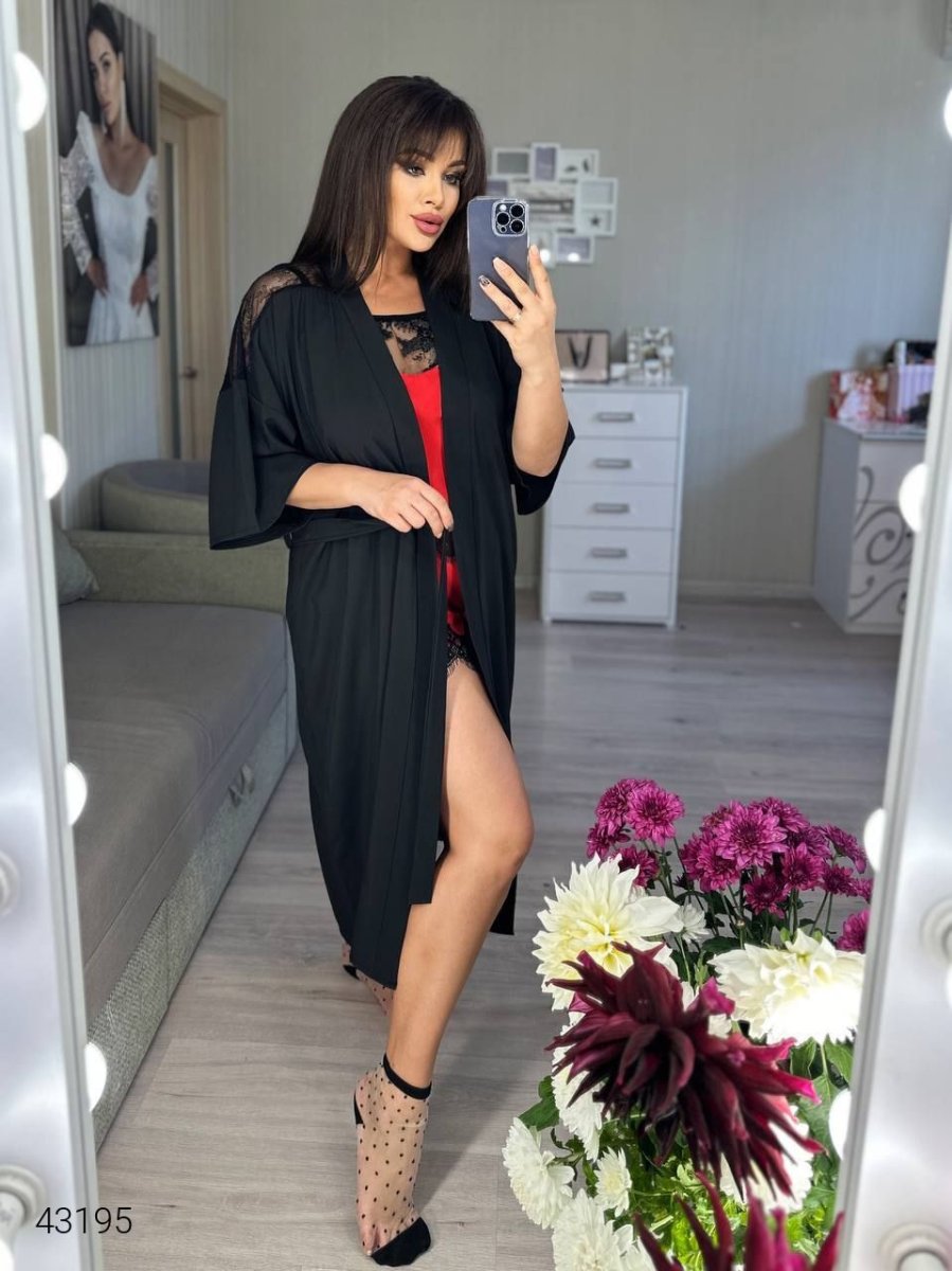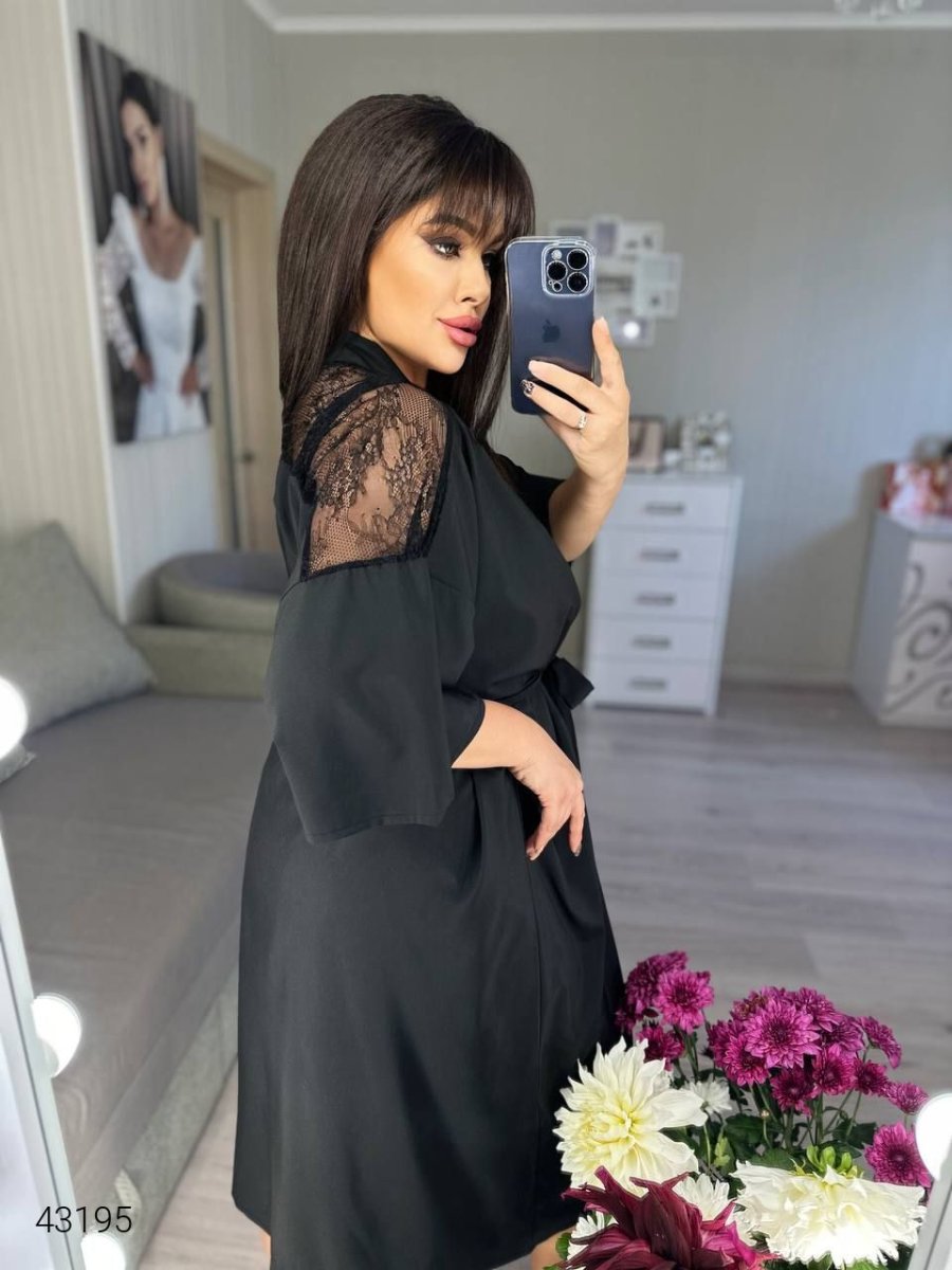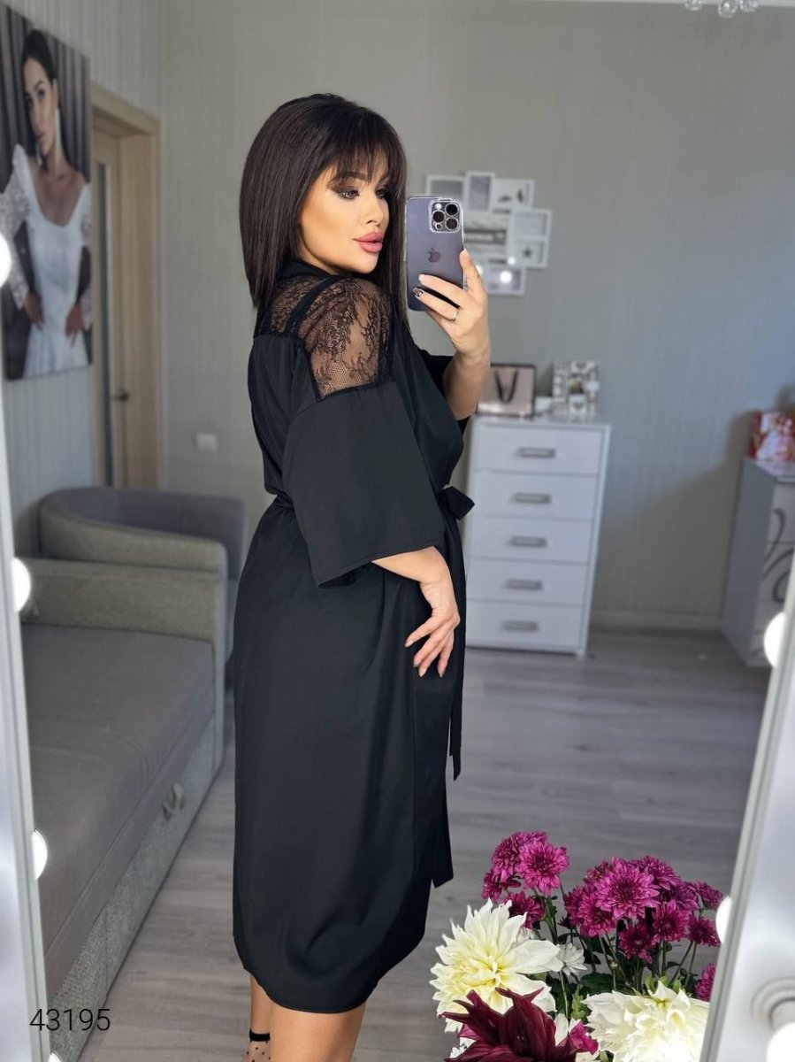 Халат жіночий з мереживом. Плечі халата виконані ніжним мереживом. Тканина: софт, не тягнеться. Склад: поліестер -100%.