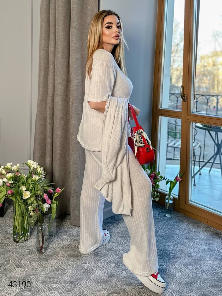 Жіночий костюм трійка. Кардиган, футболка та штани.