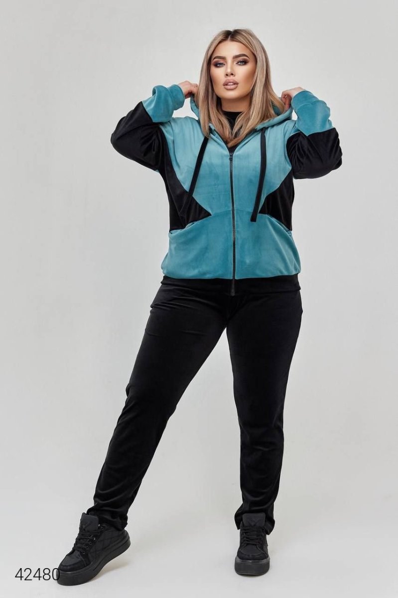 56-58: (ОГ - 150 см, ОТ - 140 см, ОС - 135, рукав - 75, довжина кофти - 70 см, довжина штанів - 108 см.)
