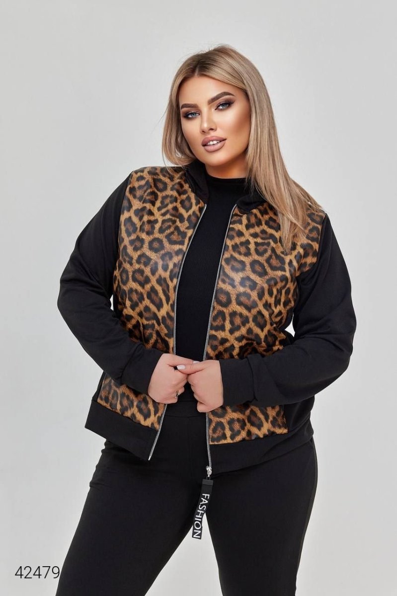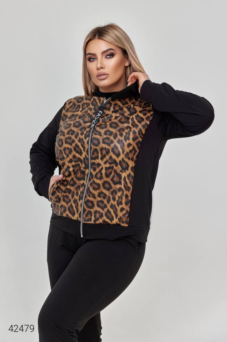 Жіночий прогулянковий костюм з леопардовим принтом.