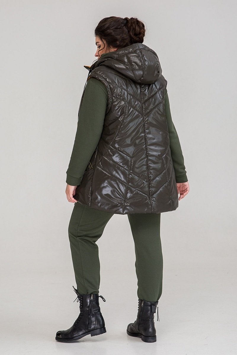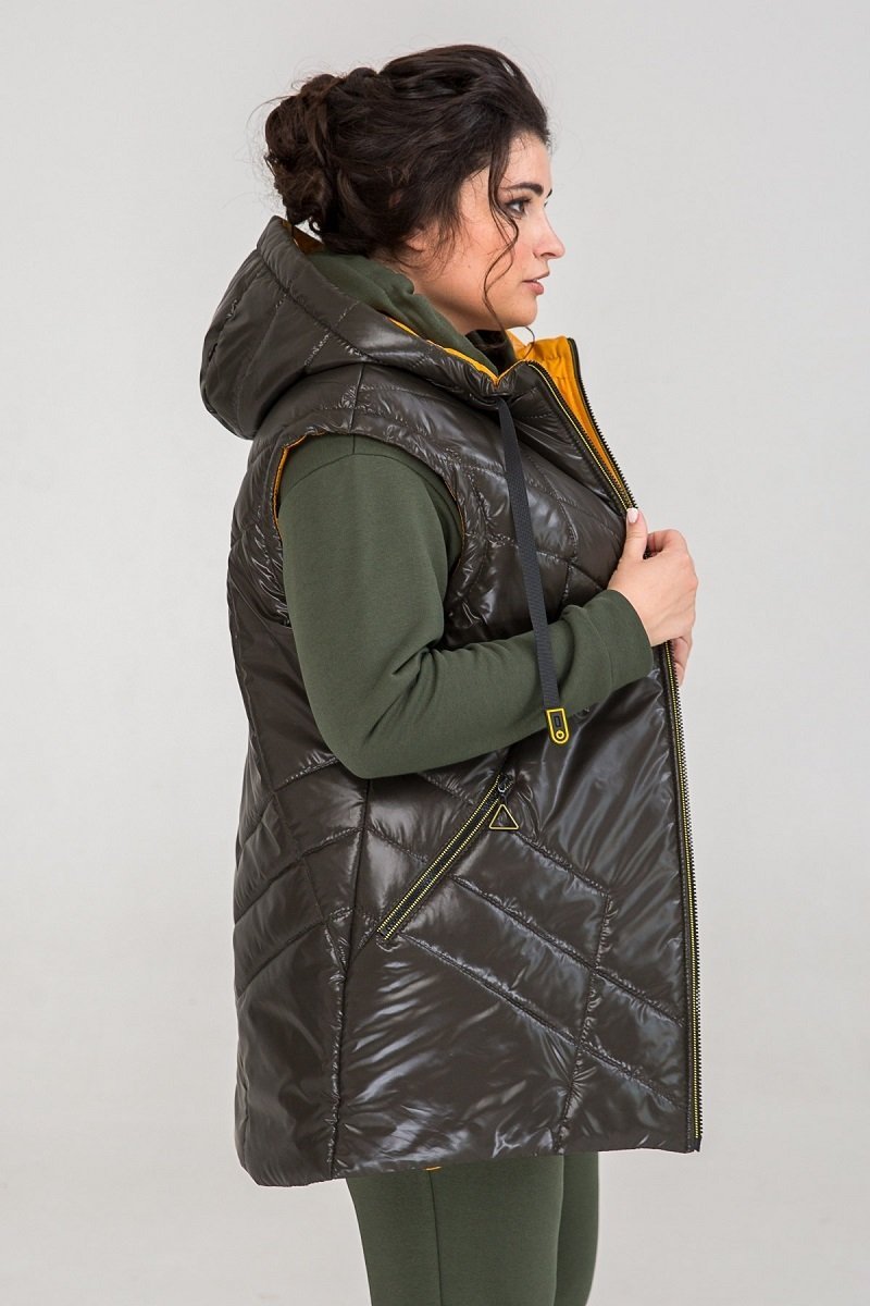 Жилет із плащової тканини, наповнювач - силікон (150), підкладка нейлон. Застібка - блискавка за всією довжиною.
