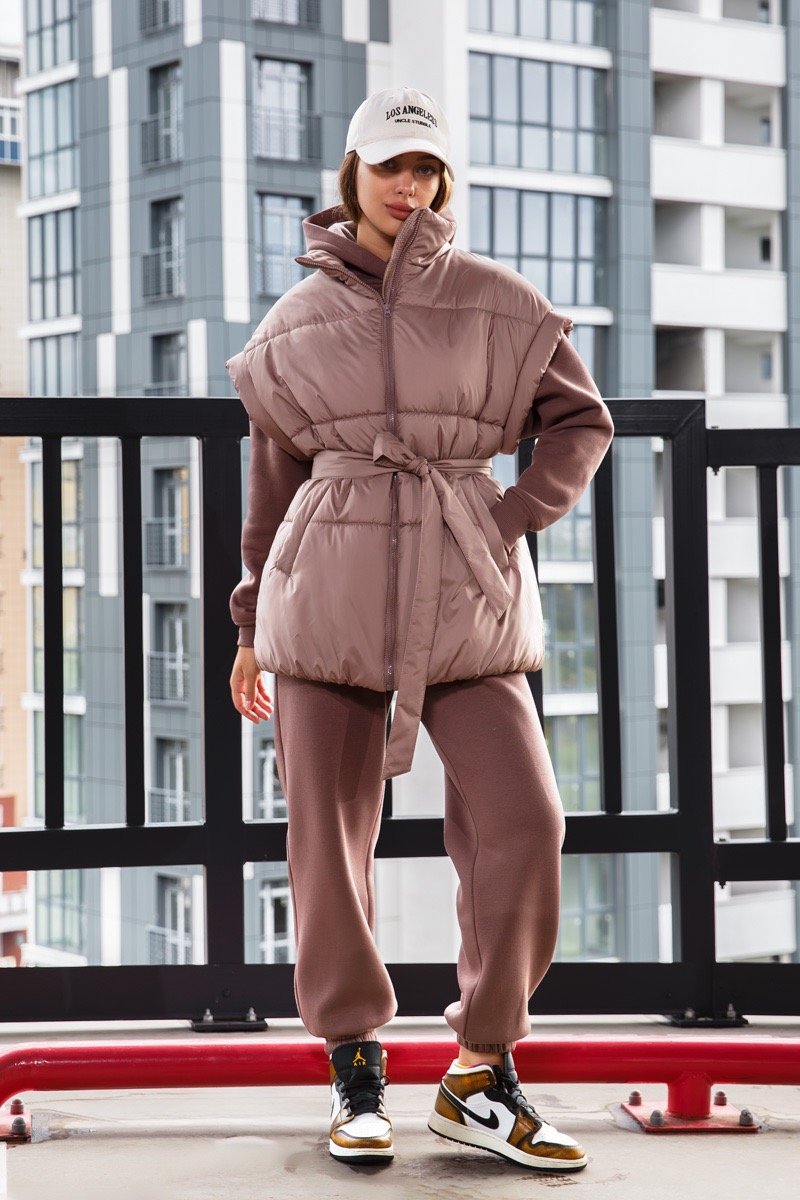 Цей чудовий жилет з плащевої тканини - ідеальний вибір для міжсезоння. Свободний крій та застібка на молнию забезпечують комфорт. Можна носити з поясом або без нього для різних стилів.