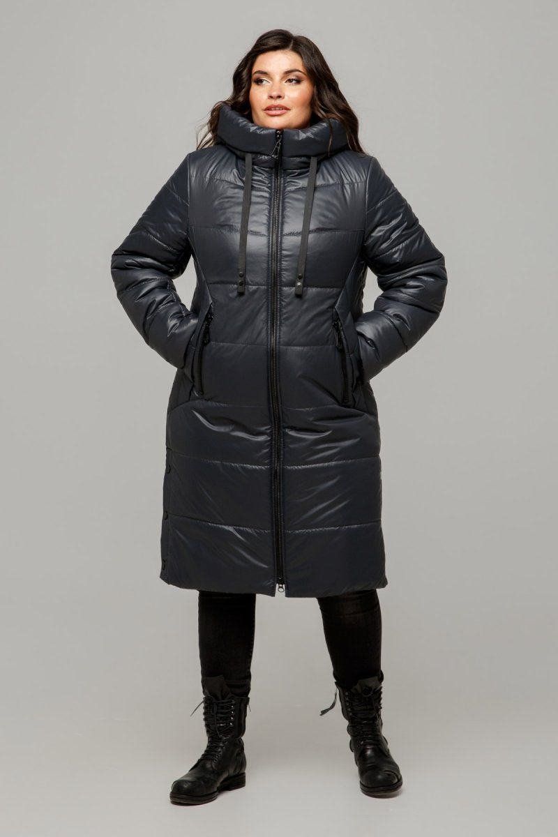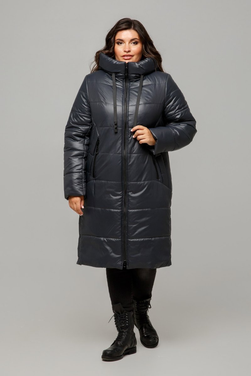 Зимове пальто прямого силуету із застібкою на блискавку. Рукави втачні двошовні. По полиці підрізи, в яких виконані кишені з клапанами, декоровані закріпками та змійками.