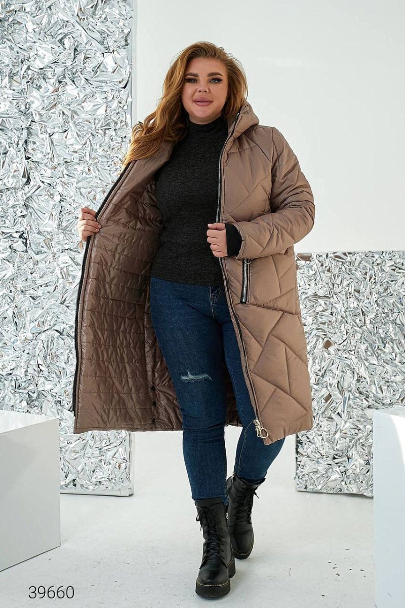 Зимове жіноче пальто. Пальто-куртка прямого крою з накладними кишенями, зручний глибокий капюшон, якісна фурнітура, нашивка. Тканина: плащівка Лаке на синтепоні 200 г.м2 плюс підкладка синтепон 100 г.м2, у рукавах синтепон 200 г.м2.