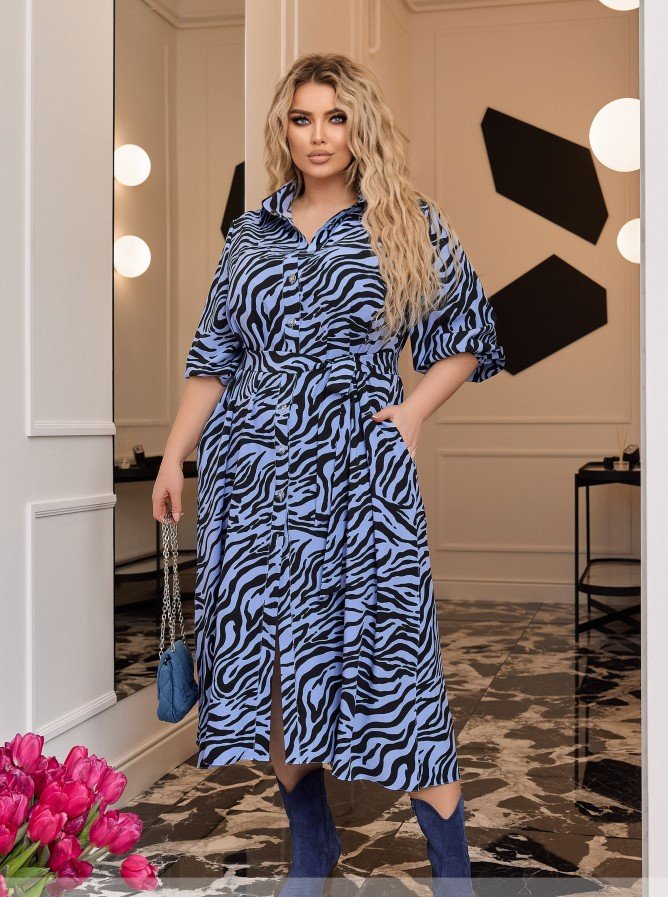 Очаровательное платье-рубашка свободного кроя, спереди застегивается на пуговицы по всей длине, что придает непринужденность и стиль образа. Текстильный пояс подчеркивает талию, а карманы по бокам придают практичность. Разрезы с обеих сторон внизу придают элегантность и удобство. Модный принт делает это платье-рубашку стильным выбором для современной женщины.