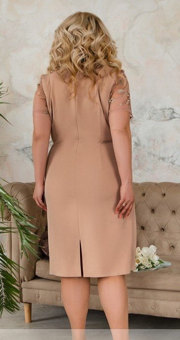 Привлекательное платье с ажурной нашитой на лиф сеточкой, украшенной вышивкой. Рукава полностью из прозрачной сеточки. На груди вытачки. Разделение подшито на спину, внизу вырез со вставкой-сеточкой, застежка - вшитая по спинке молния, сзади на подоле шлица.