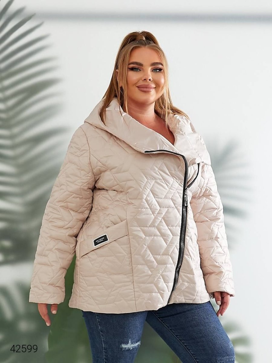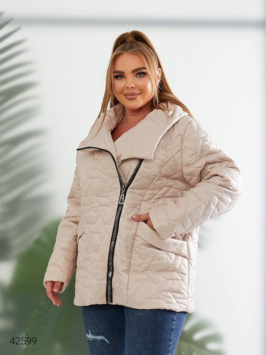 Демисезонная женская куртка плюс сайз 42599 молочная