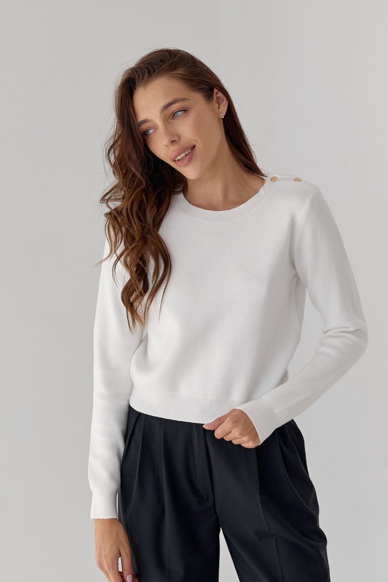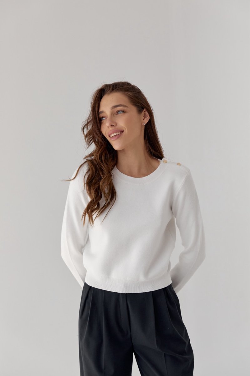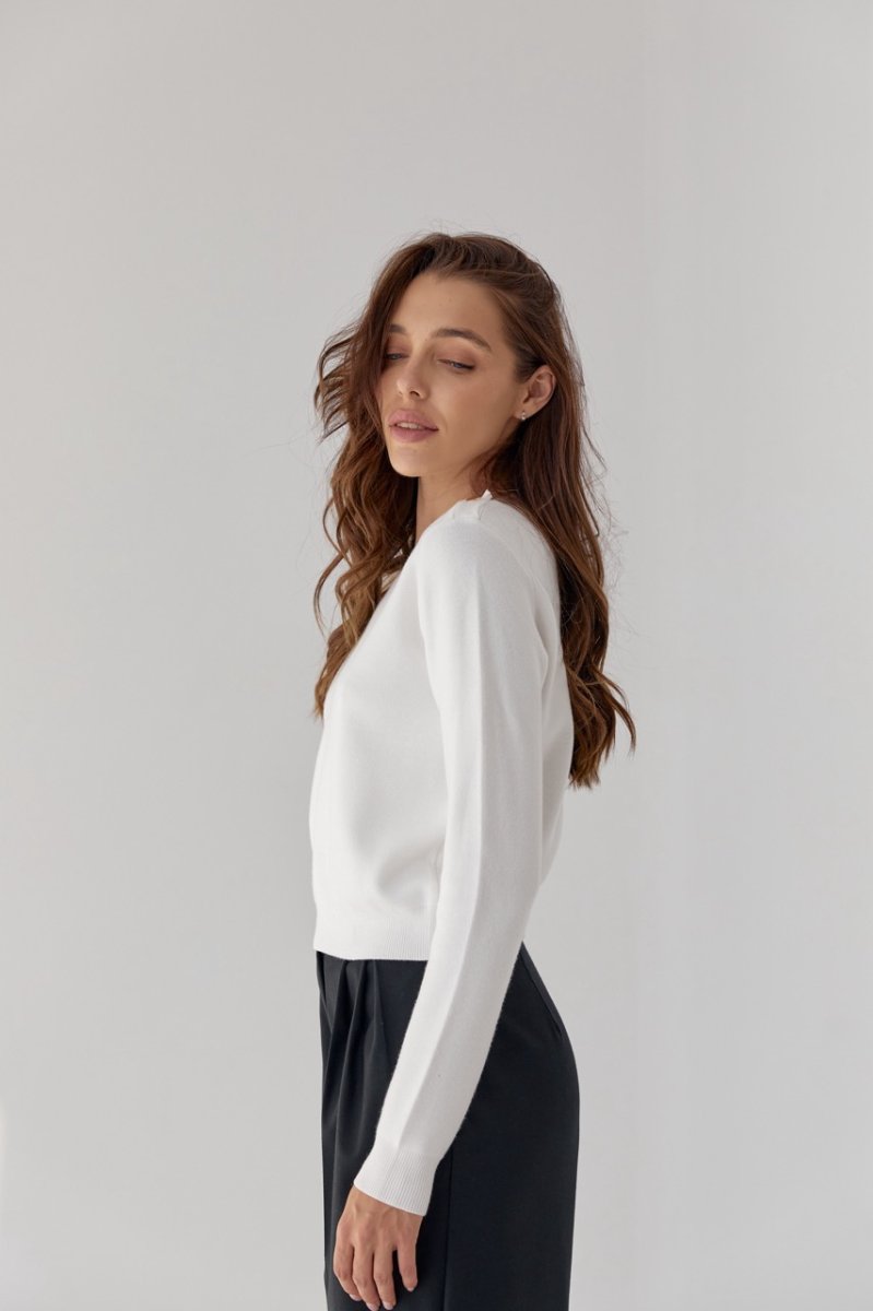 Теплый трикотажный джемпер. Рукава втачные, длинные, по низу рукавов и по низу изделия выполнен манжет.