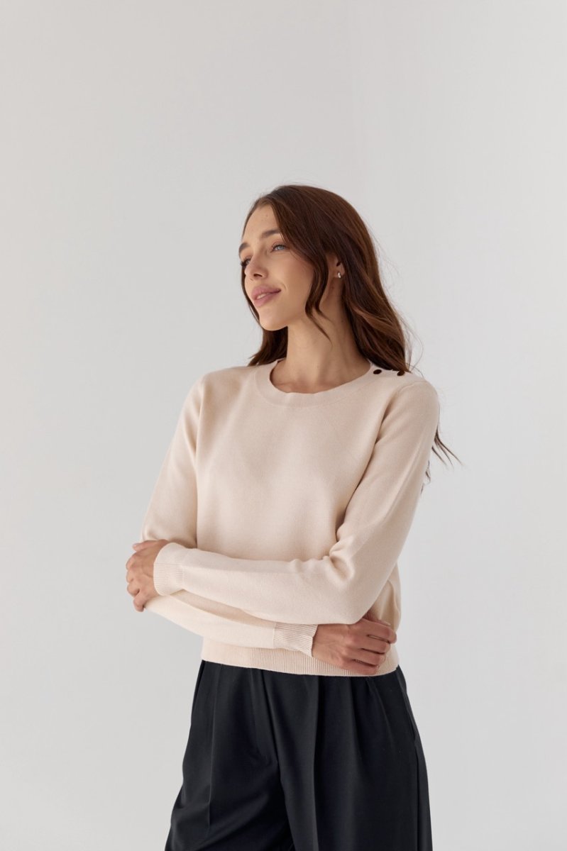 Теплый трикотажный джемпер. Рукава втачные, длинные, по низу рукавов и по низу изделия выполнен манжет.