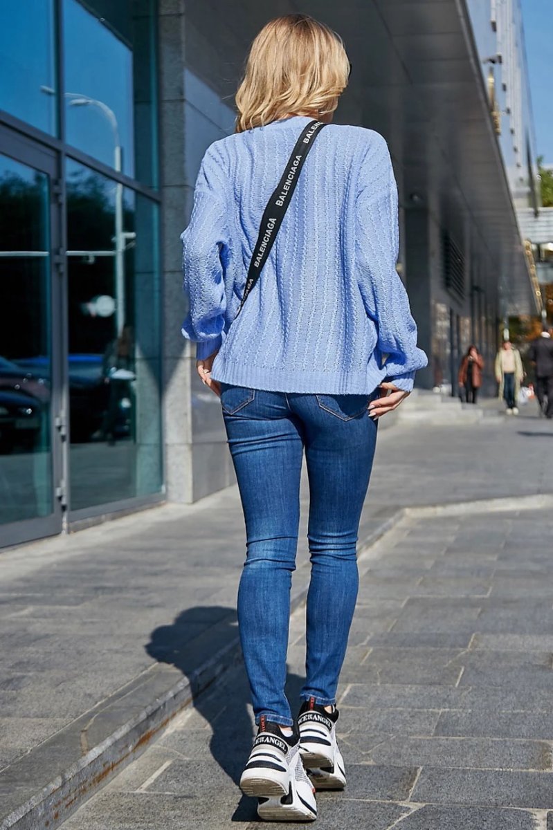 Изделие оверсайз изготовлено из высококачественной вязки, имеет элегантную круглую горловину и приспущенное плечо. Свободный фасон оверсайз раскрепостит движения, придаст уверенности.