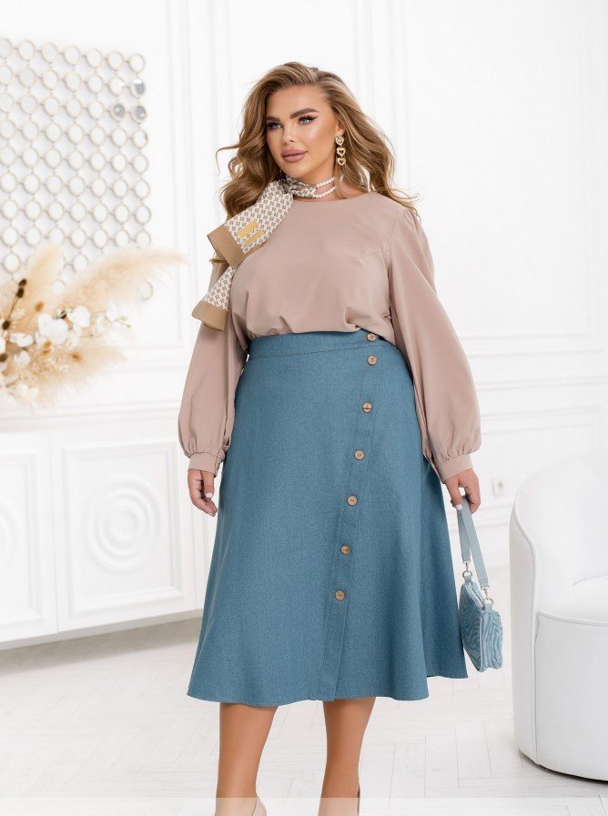 Женская юбка джинсовая меди станет вашим фаворитом в этом сезоне благодаря комфорту и универсальности, которые она подарит вам. Модель на резинке, вшитой в пояс по спинке, застегивается на ряд пуговиц спереди, а также дополнена удобными карманами в боковых швах.