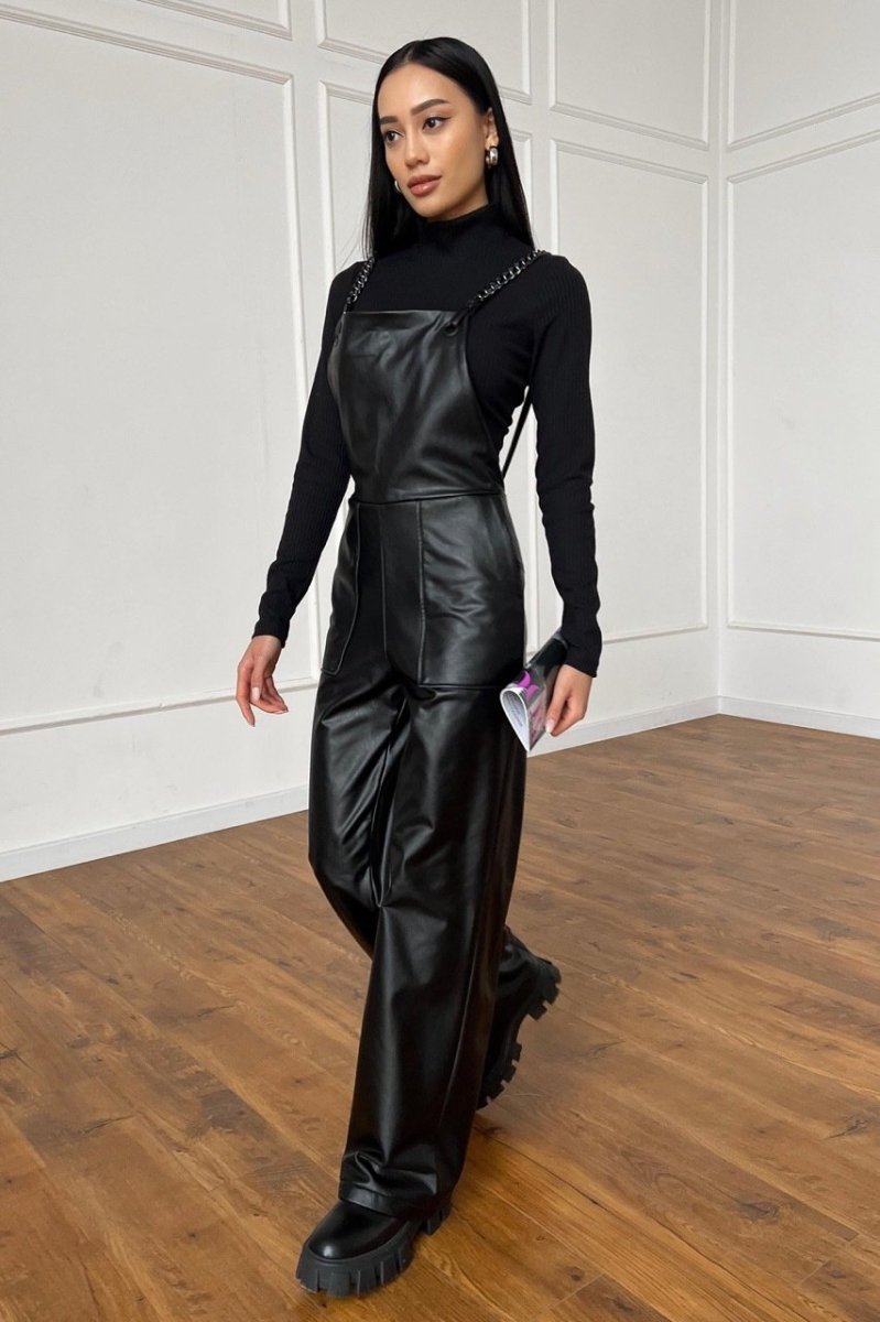 Комбез из эко кожи с уверенностью можно назвать одним из самых экстравагантных предметов женского гардероба. Такие изделия делают акцент на бедрах и подчеркивают стройность ног и удлиняют силуэт. Благодаря этому любая девушка сможет выглядеть стильно и дорого. Самым универсальным решением становится именно черный кожаный комбинезон – он всегда выглядит очень стильно и актуально, прекрасно сочетаясь с другими изделиями из кожи – сумкой или обувью.