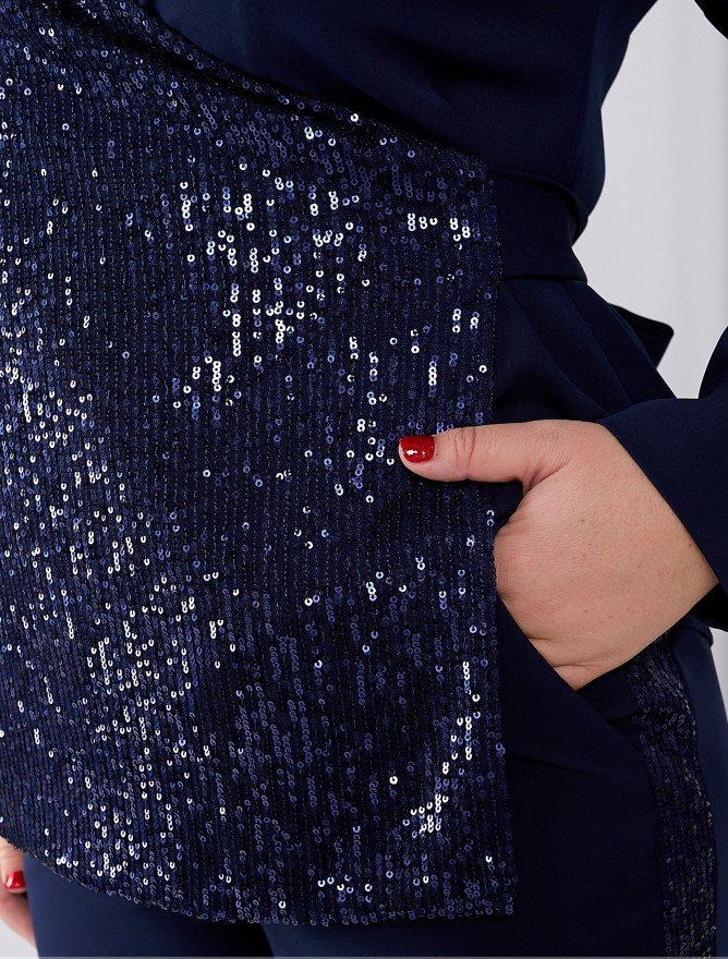 Нарядный классический костюм с пайетками - это элегантный и стильный выбор для особых случаев. Этот костюм станет украшением вашего гардероба и идеальным выбором для важных событий или праздничных вечеров.
