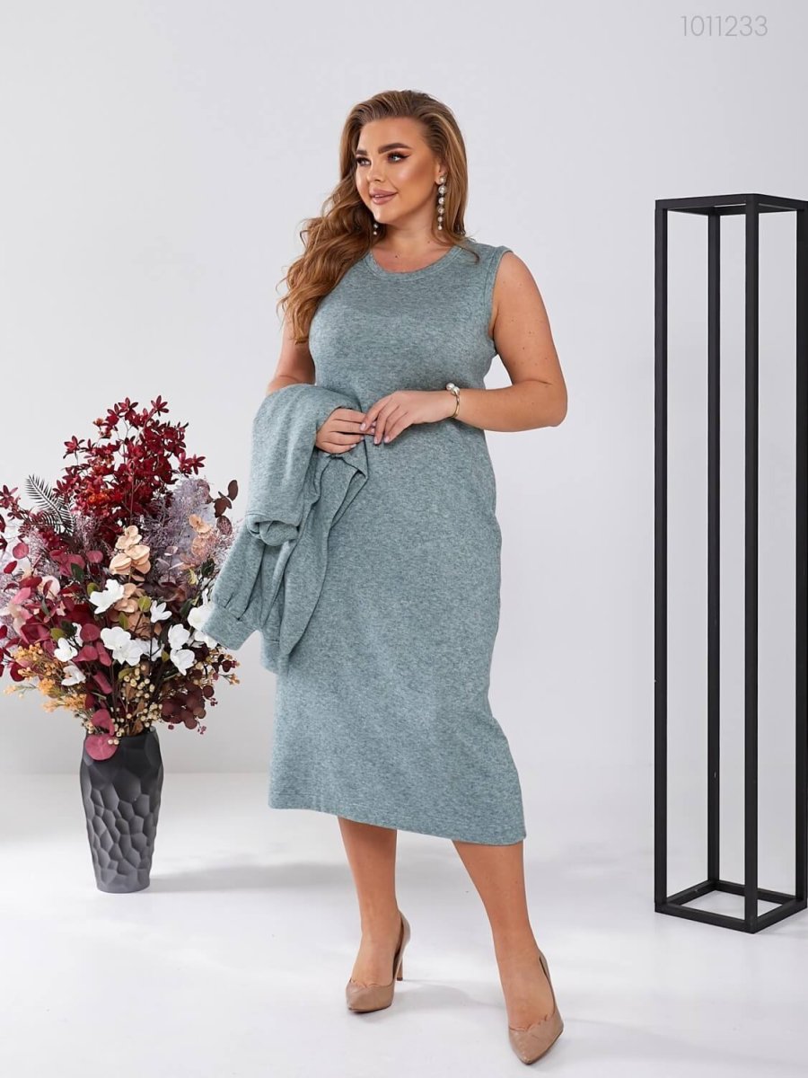 Костюм Плезыр с платьем длиной миди прямого силуэта (молочный)