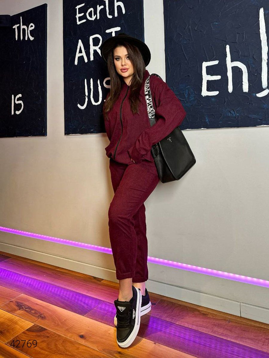 Костюм женский больших размеров джогеры и бомбер 42769 бордовый