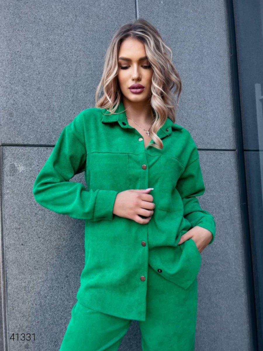 Костюм женский вельветовый. Прямая рубашка и штаны. Ткань: микровельвет, тянется.