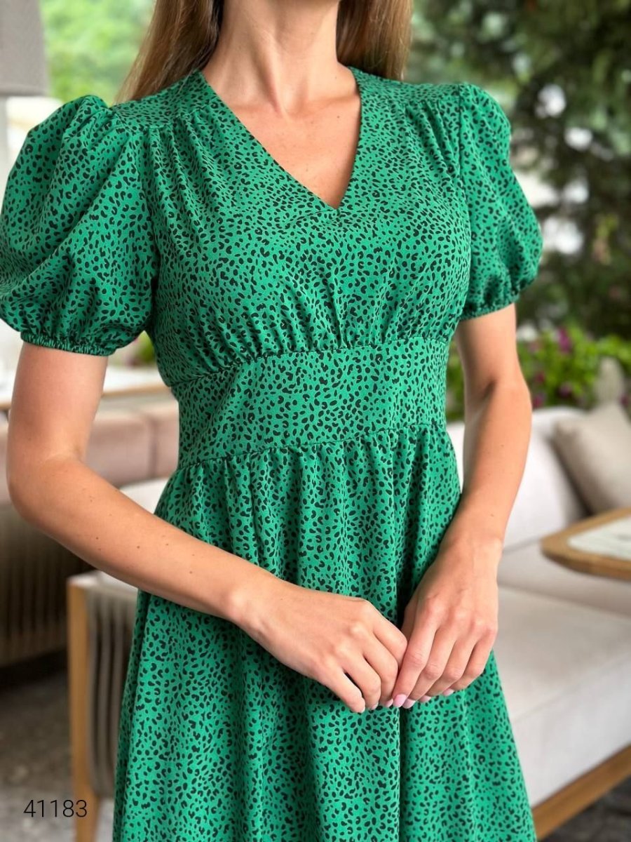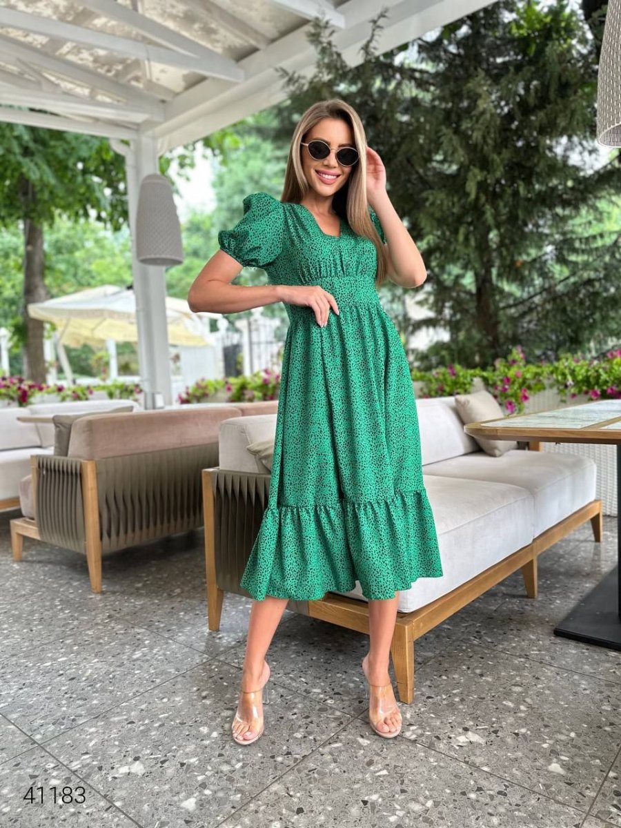 Летнее платье. На спине потайная молния. Рукава на резинке. На юбке боковые разрезы. Ткань: турецкий софт.