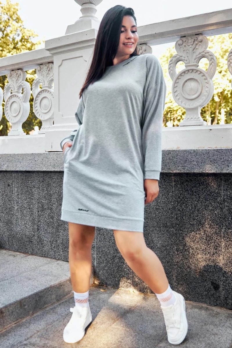 Молодежное платье со свободным, зауженным к низу фасоном. Подчеркнуть линию талии помогает съемный текстильный пояс с пряжкой. По низу платья идет манжета, а сбоку расположены удобные карманы. Модель украшена вышивкой и имеет стильные длинные приспущенные рукава.