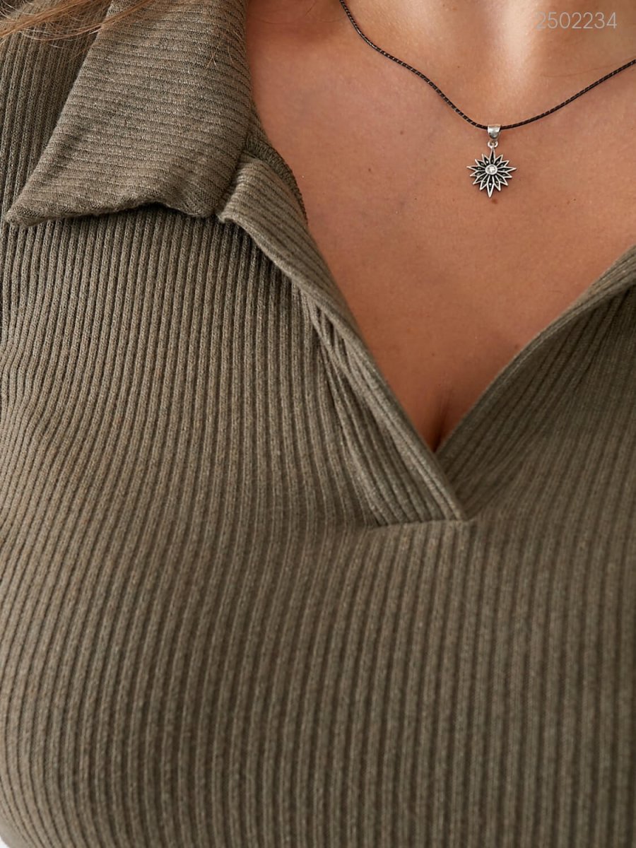 Подробности: Свитер с отложным воротником и длинным рукавом.