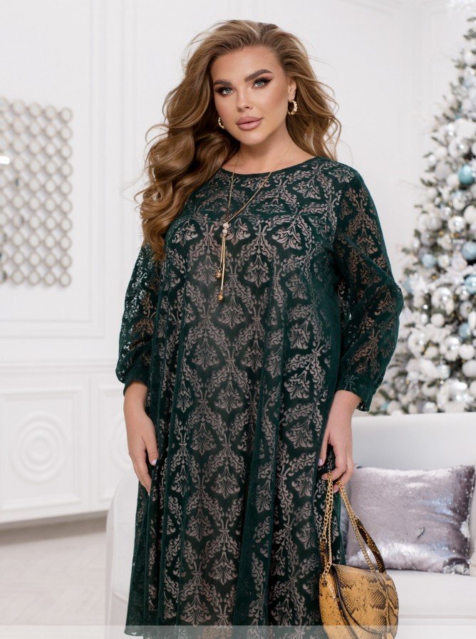 Верхний слой выполнен из флока, придавая платью теплоты и мягкости. Это платье манит своей нежностью и романтичностью, создавая образ элегантной и чувствительной личности. Оно идеально подходит для особых событий, где вы хотите выглядеть изысканно и впечатляюще.
