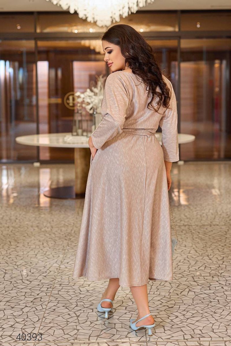 Платье миди больших размеров. Ткань: корейский трикотаж. Пояс в комплекте.